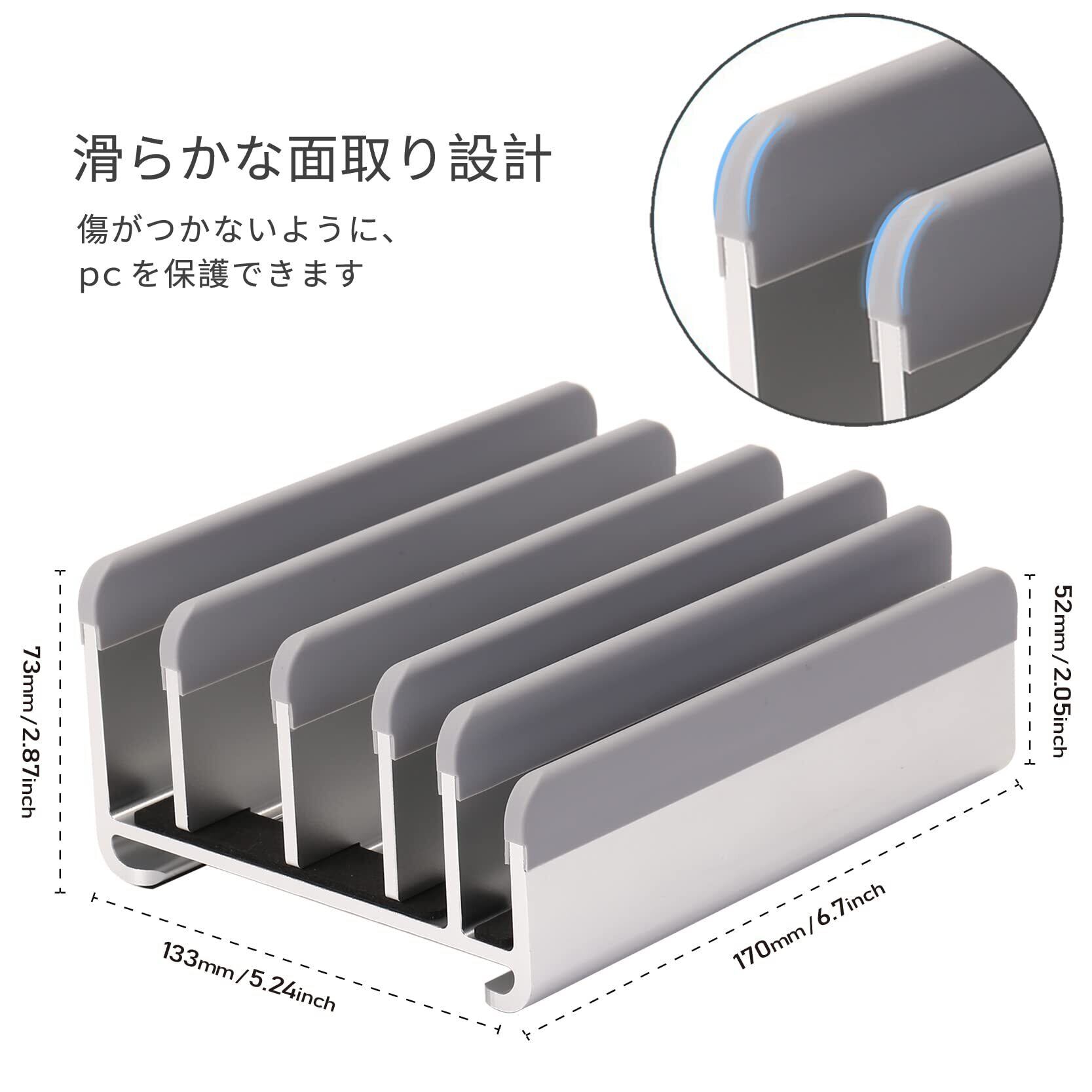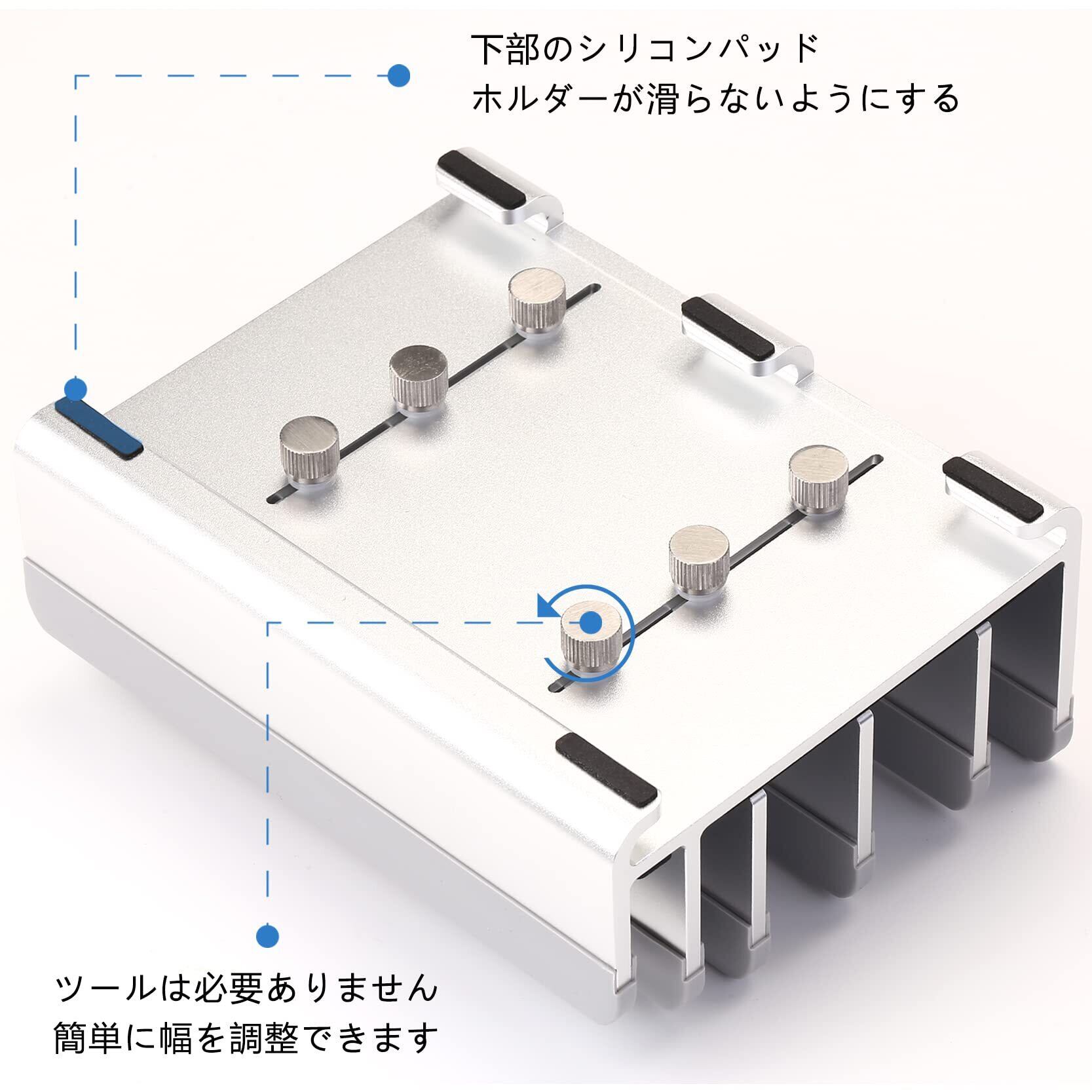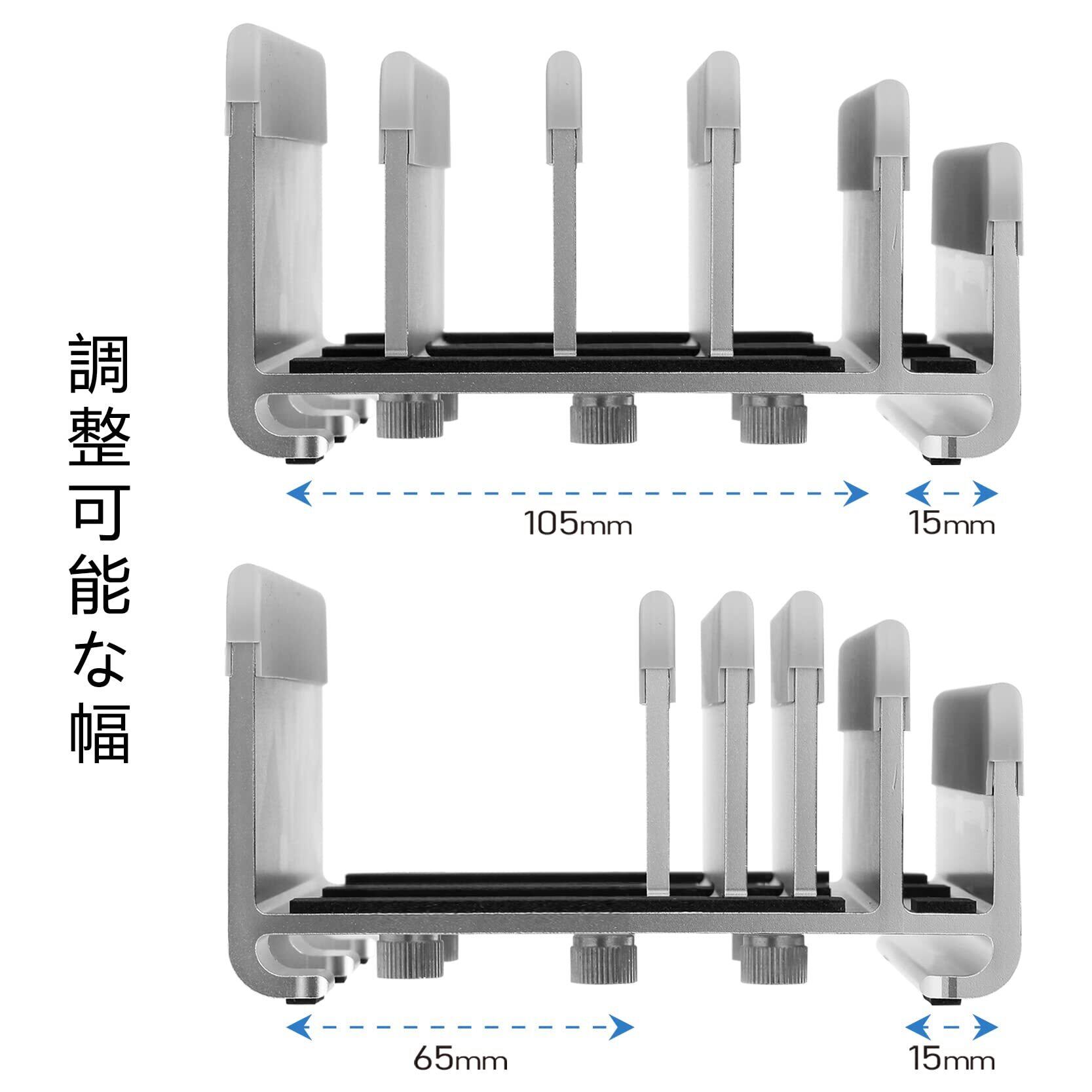 【5台まで収納可能】最大5台のデバイスが収納可能な設計で、任意の幅に調節することができます。ノートパソコン、ipad、書籍、Switchなど、さまざまな機器を一箇所にまとめて、デスク上の作業スペースを有効に活用することができます。