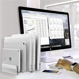 縦置きで最大5台のデバイスを収納できるノートパソコンスタンド。幅は自由に調節可能で、素材のアルミニウムは、様々なブランドのノートパソコン、ipad、スマホ等と相性が良好です。MacBook Pro/Air/Microsoft Surfaceのすべてに対応し、新デザインを採用しています
