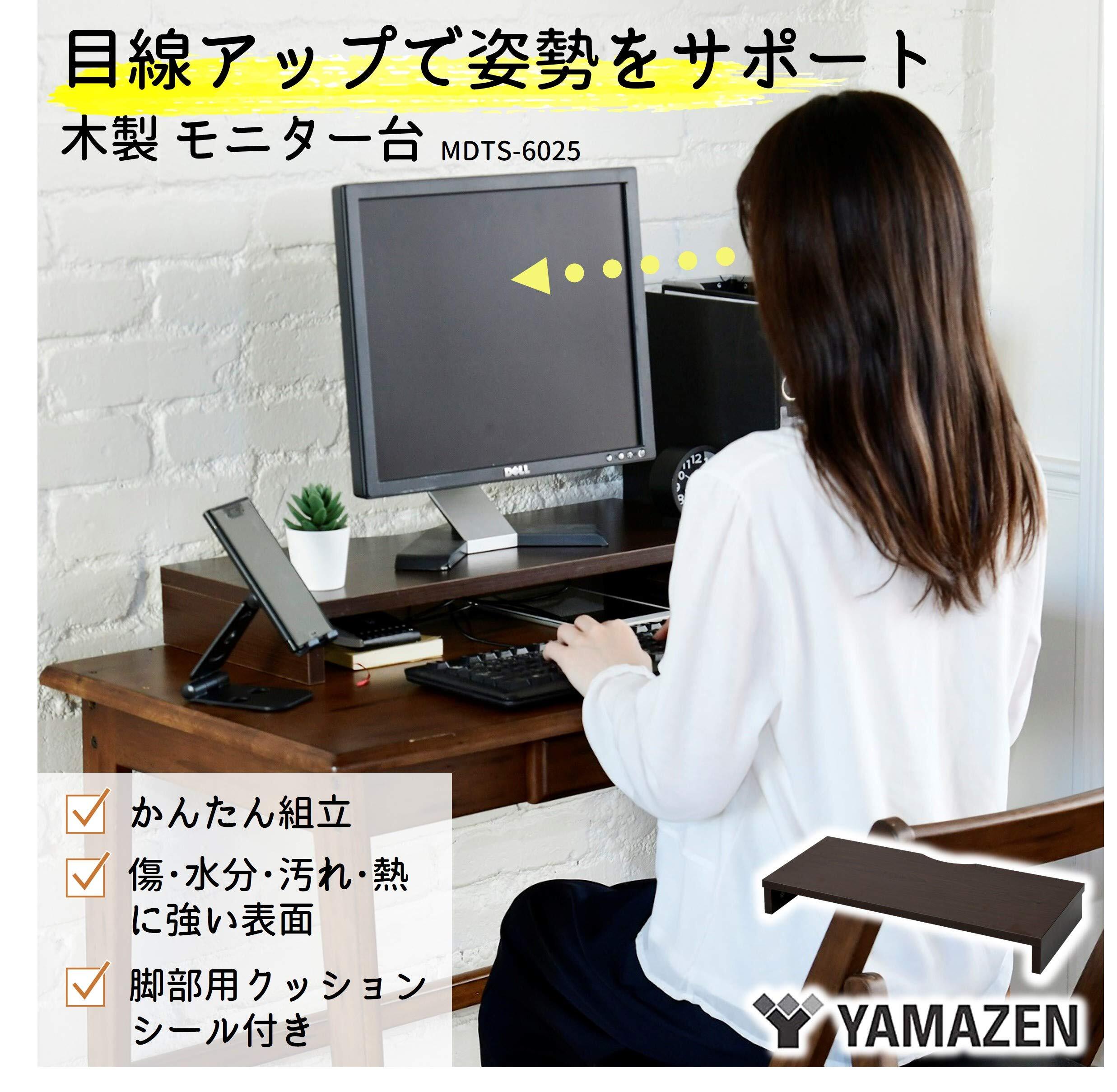 山善(YAMAZEN) モニター台 (机上台) 木製 傷・汚れ・水分・熱に強い コンパクト パソコン台 幅60×奥行25×高さ8cm 組立かんたん ココアブラウン MDTS-6025(CCB) テレワーク