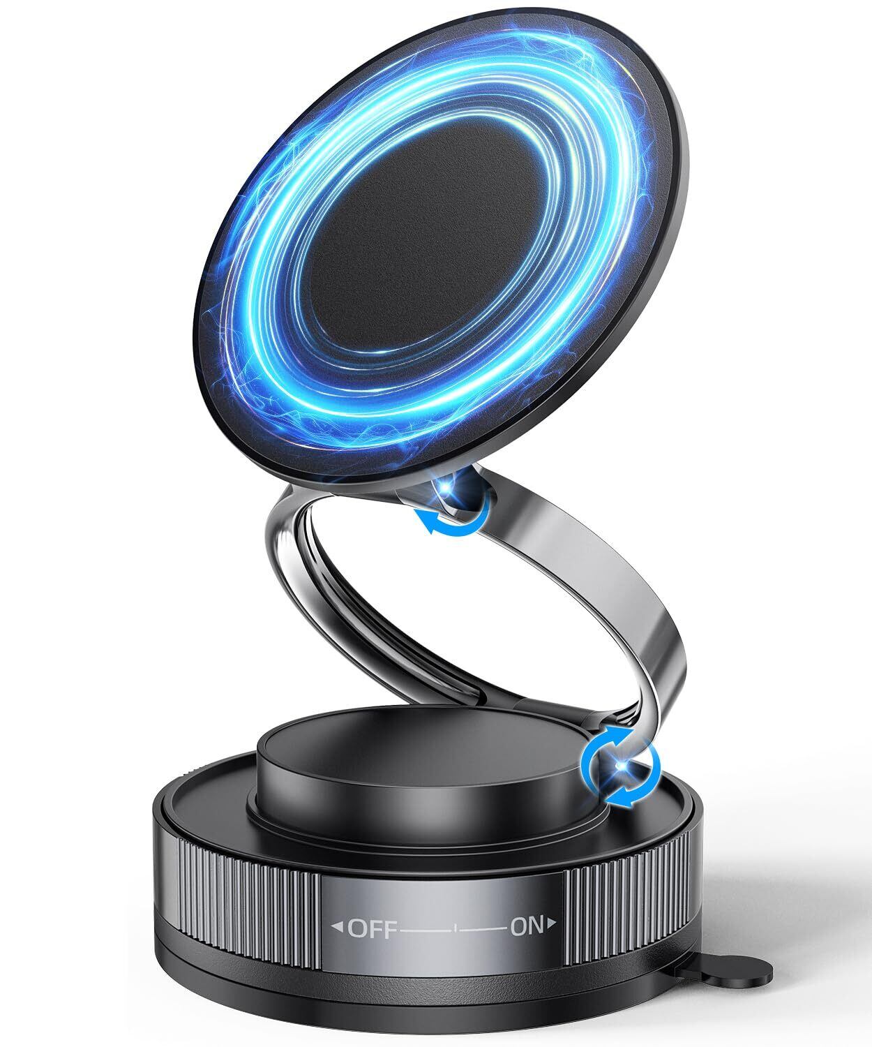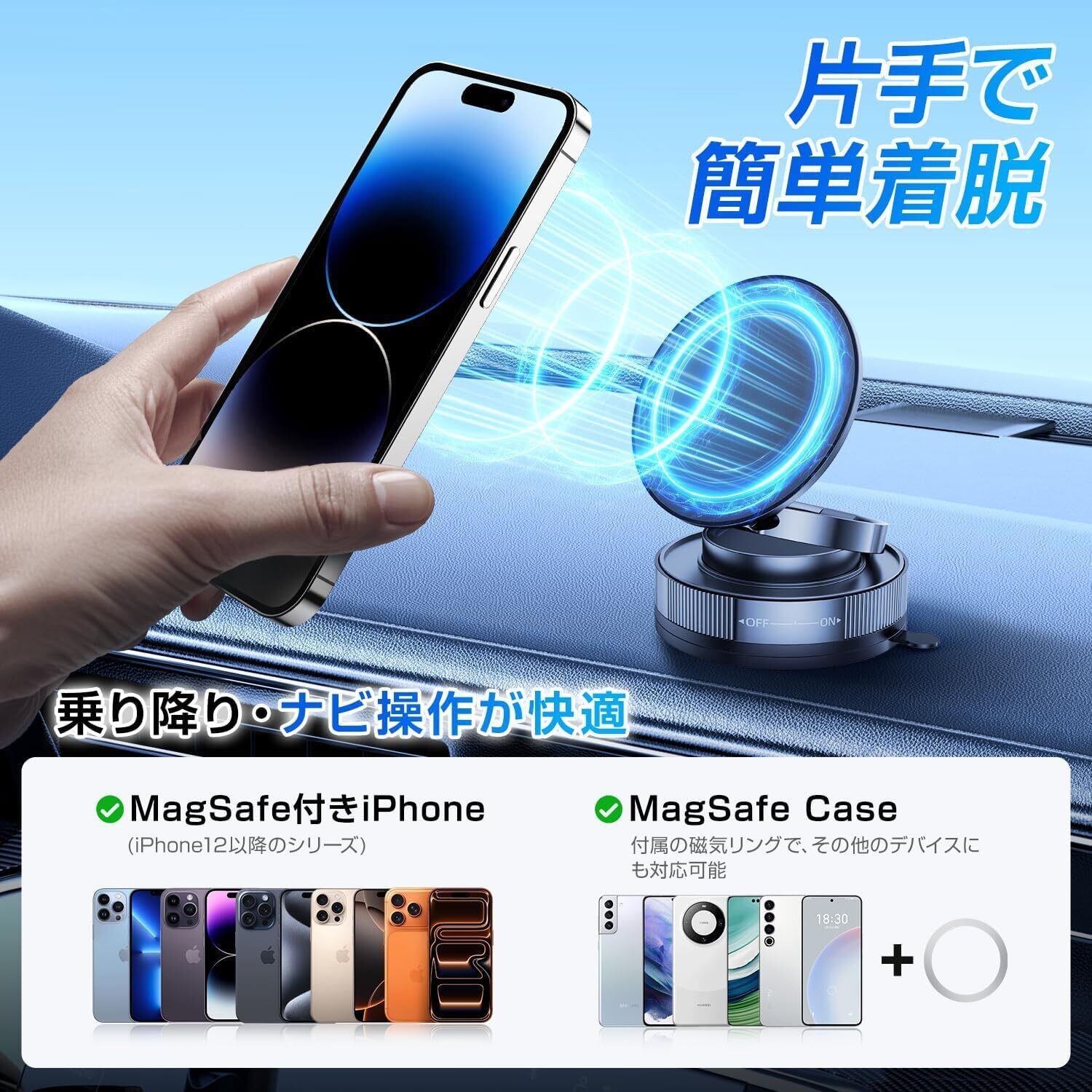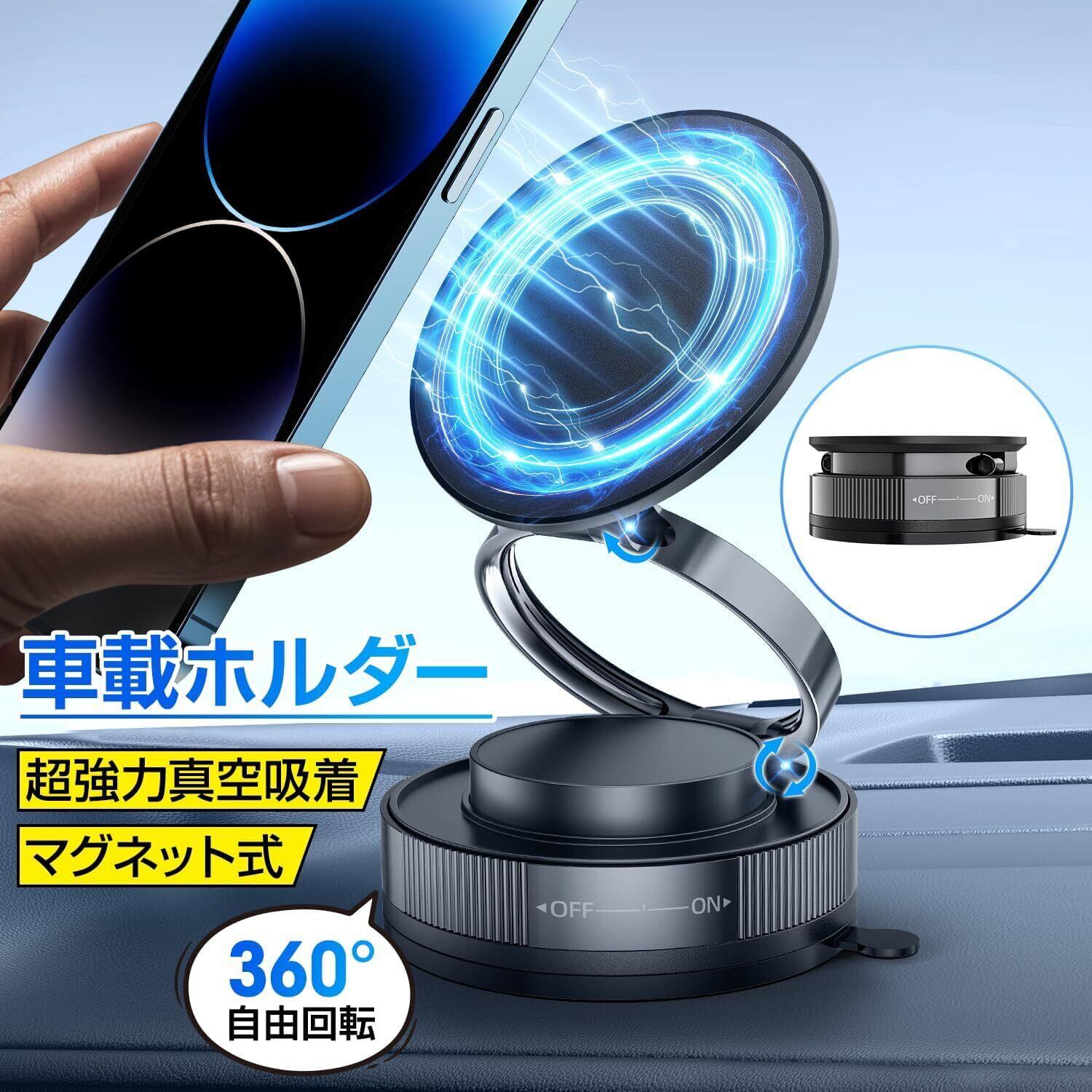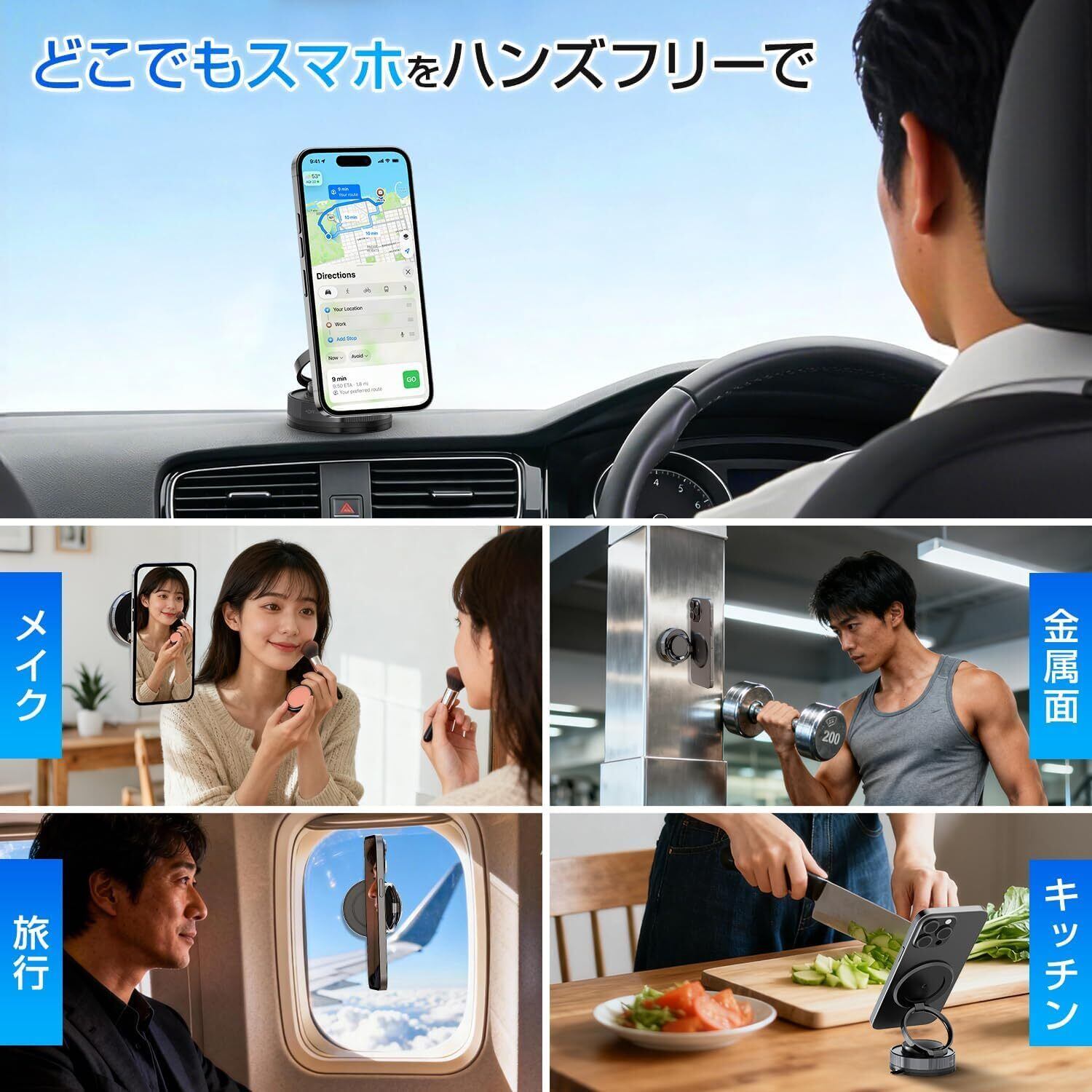 Soumis スマホホルダー 車 スマホスタンド車載スマホホルダー magsafe 車載ホルダー 真空吸着式スマホホルダー N55超強力磁石 360°回転 自由調節 マグセーフ 車載 W固定構造 マグネット 折りたたみ式 片手操作 金属面 多用途設置 iPhone/Android対応 カー用品