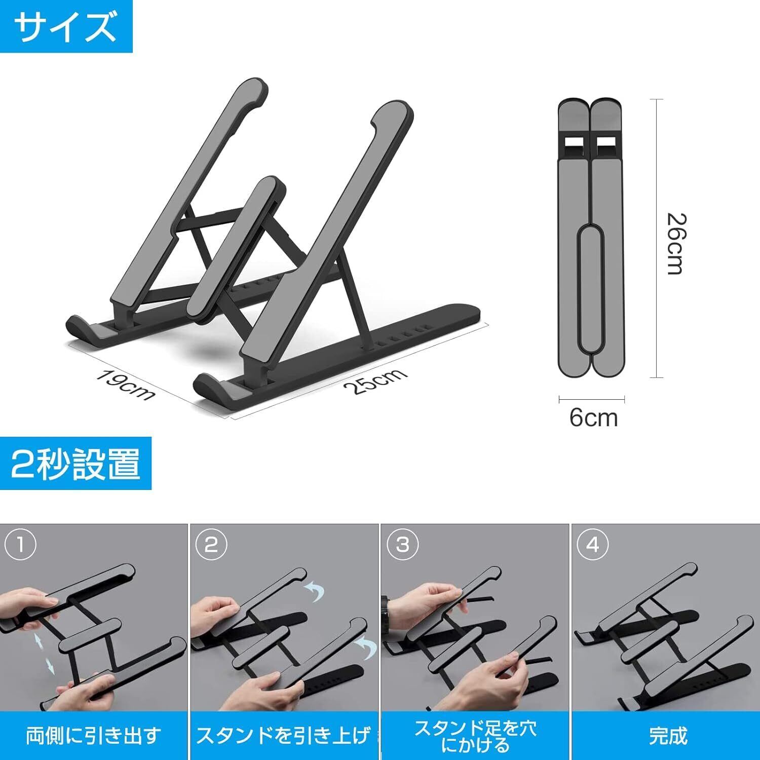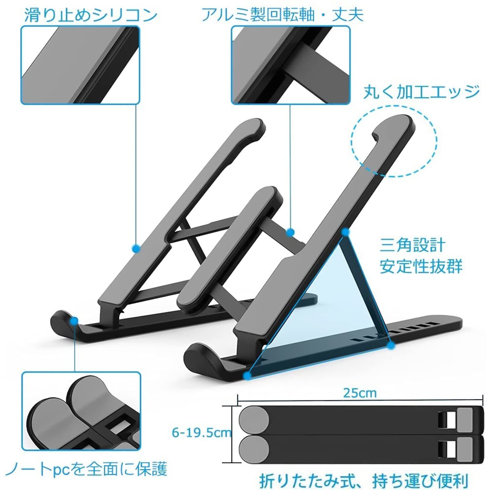 ノートパソコンスタンド PCスタンド 軽量 持ち運び 8段 高さ調整 ノート パソコン台 卓上 ノートパソコン台 机上台 pc 台 プラスチック製 ノートpc スタンド 折りたたみ パソコンすたんど ノート 角度調整 在宅ワーク 便利グッズ (ブラック)