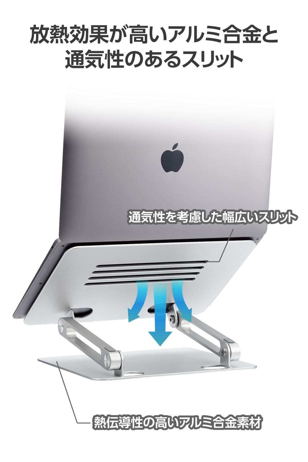 ■通気性を考慮した幅広いスリットと、アルミ合金の高い熱伝導性により、端末から発せられる熱の放熱効果を高めています。