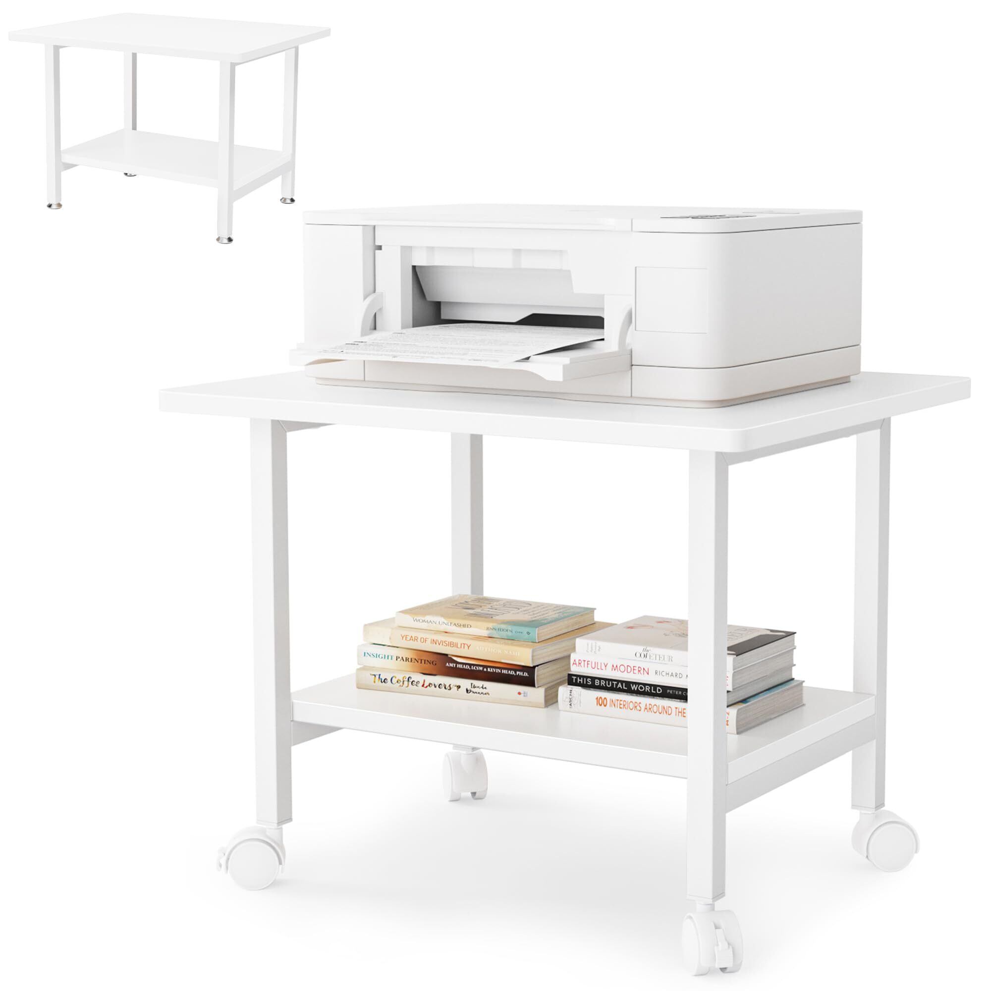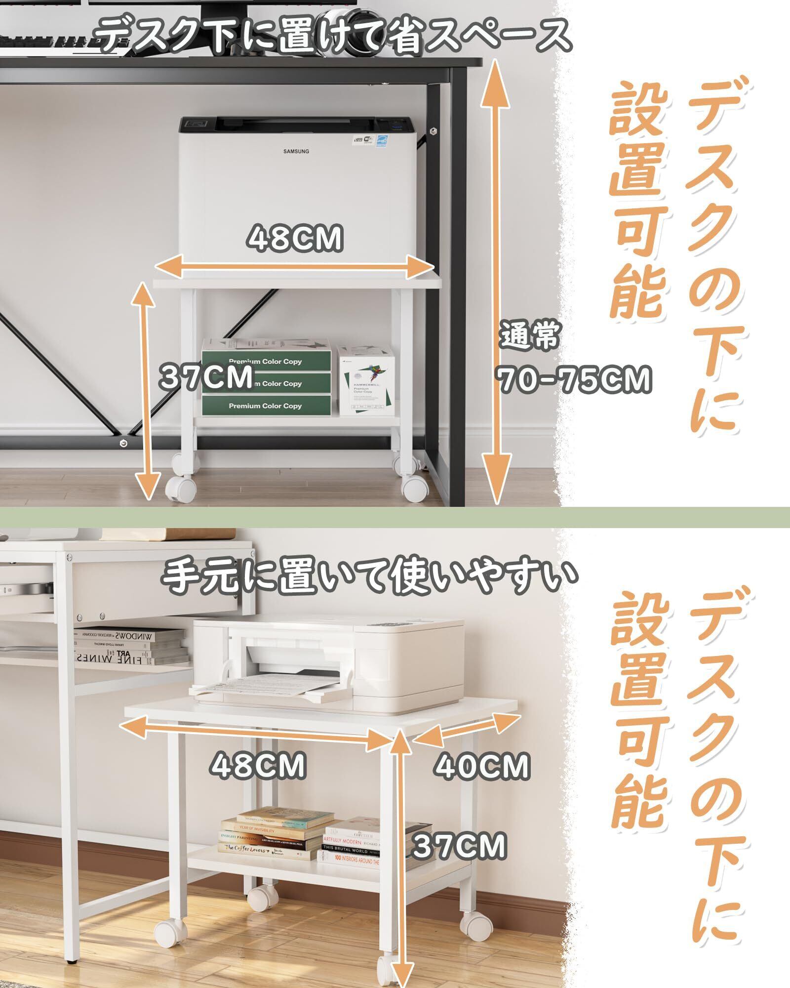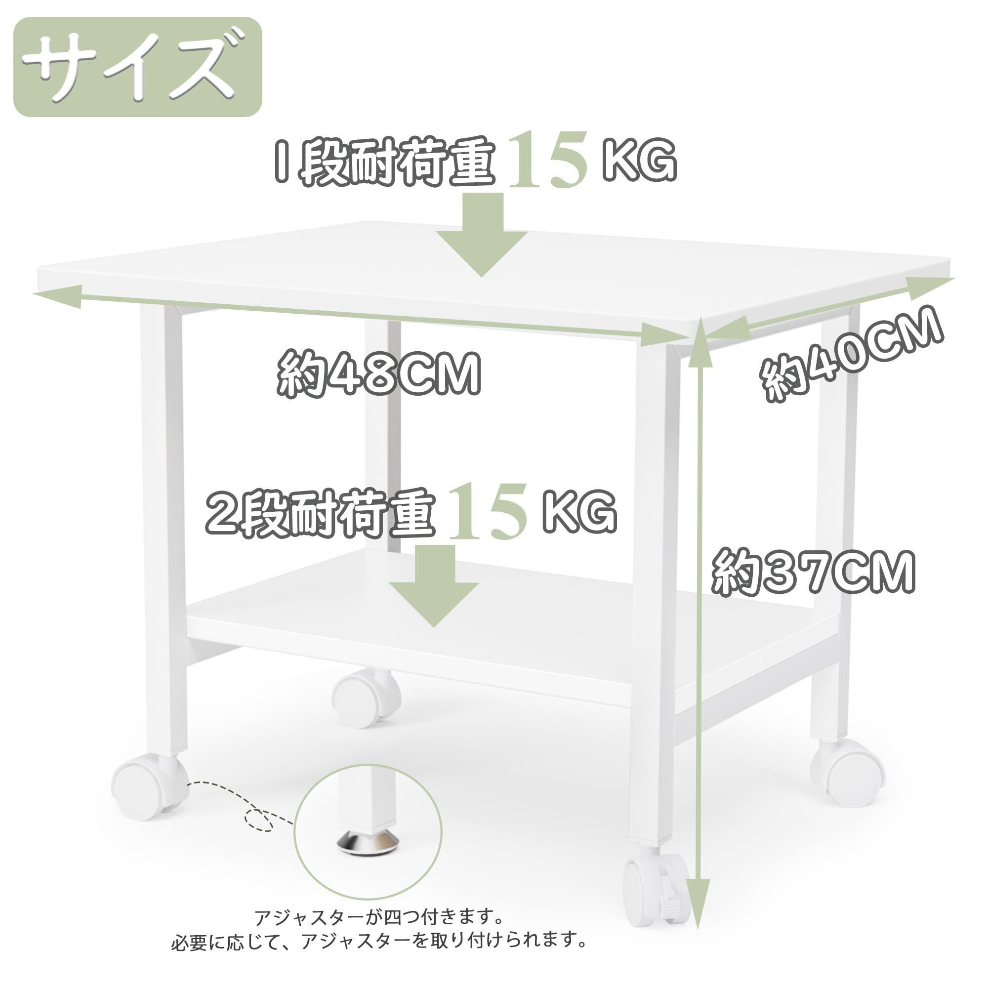 DEWEL プリンター台 2段 キャスター付き 幅48×奥行40×高さ37cm プリンターラック 卓上 デスク下 収納 木製 総耐荷重30kg アジャスター付き コピー機台 コピー機置き台 複合機台 プリンタ台 ファックス台