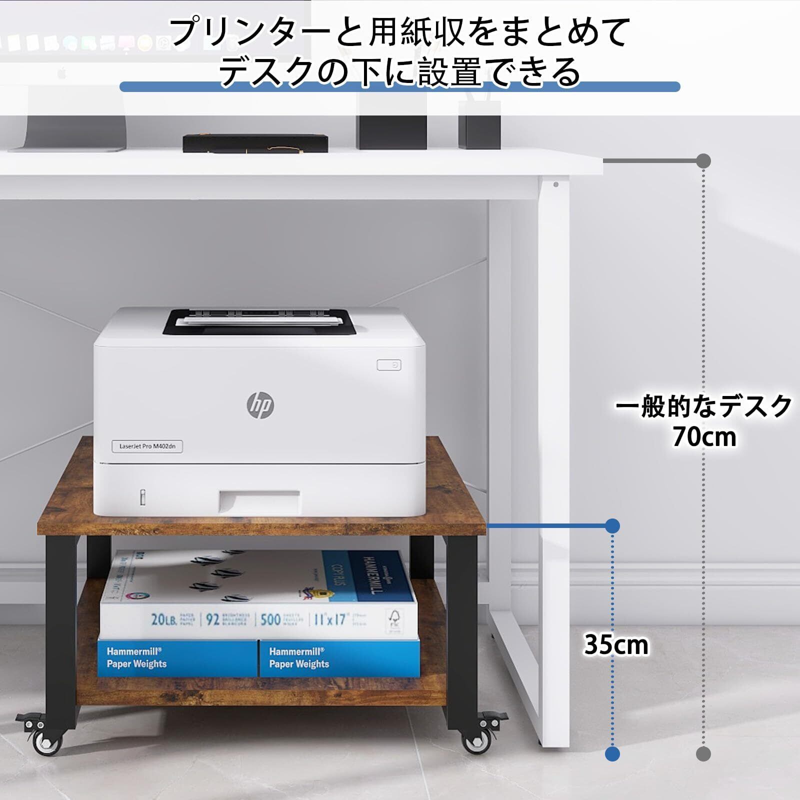 【効率アップ】デスクの下に置いて使いいただける高さ約32cmのコンパクトサイズです。プリンタースタンドを近くの机の下に設置し収納することで、スペースを大幅に節約できるだけでなく、無駄な動きを減らしてくれ作業効率をアップさせてくれます。