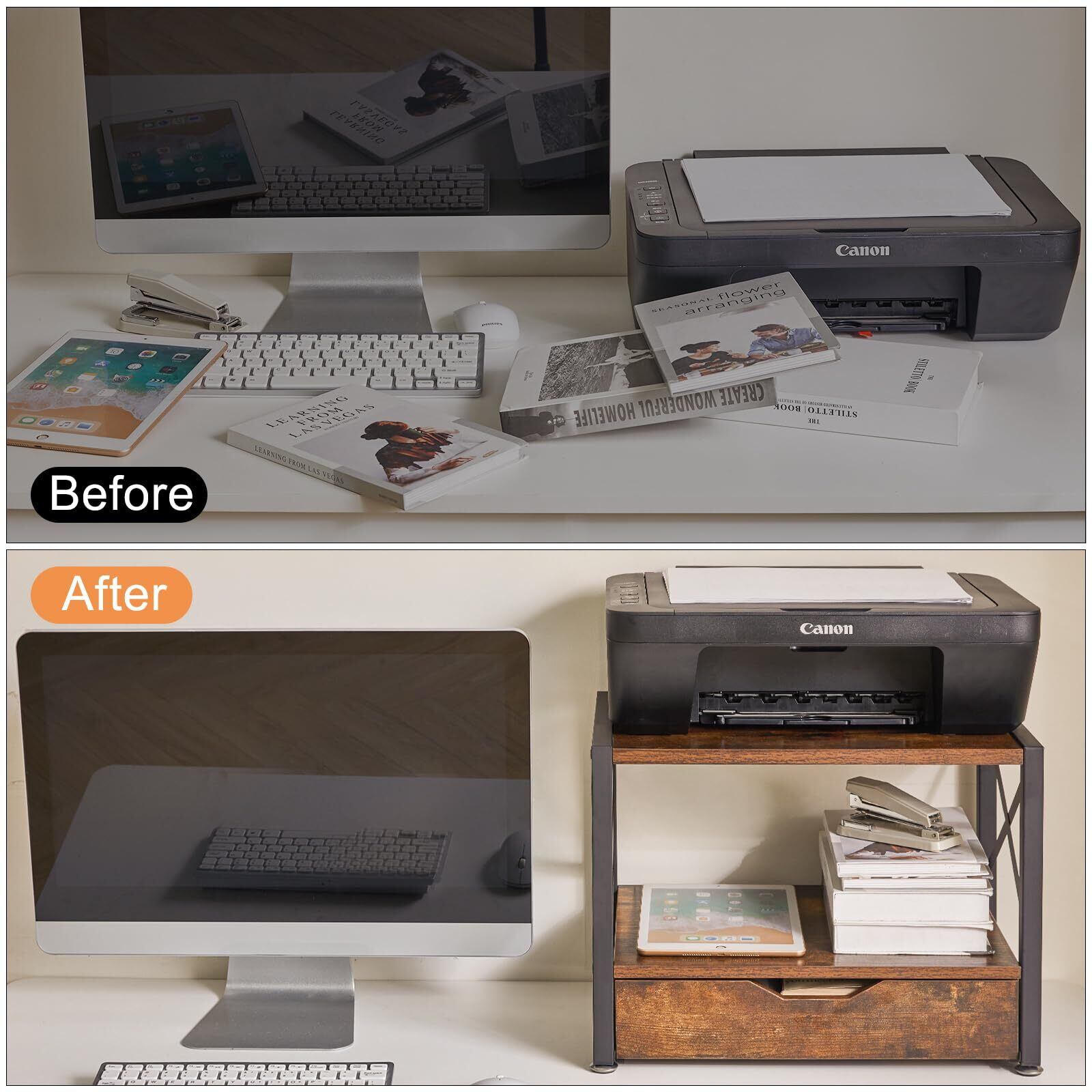 【新着商品】IBUYKE プリンター台 木製2段 デスク収納 ラック 引き出し付き下段 机上&机下台 卓上収納 幅44×奥行29×高さ33cm オフィス 部屋 収納用 組立簡単 ブラウン JPTLJ006H