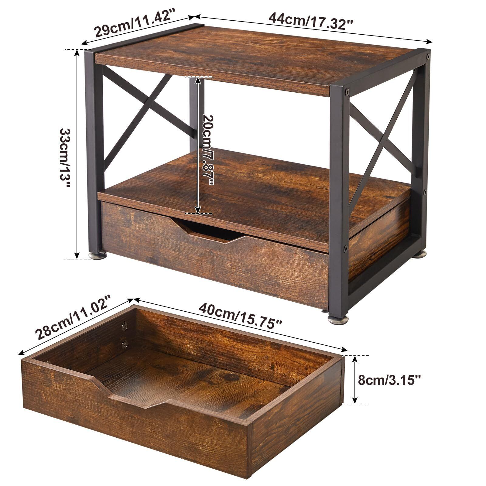 IBUYKE プリンター台 木製2段 デスク収納 ラック 引き出し付き下段 机上&机下台 卓上収納 幅44×奥行29×高さ33cm オフィス 部屋 収納用 組立簡単 ブラウン JPTLJ006H