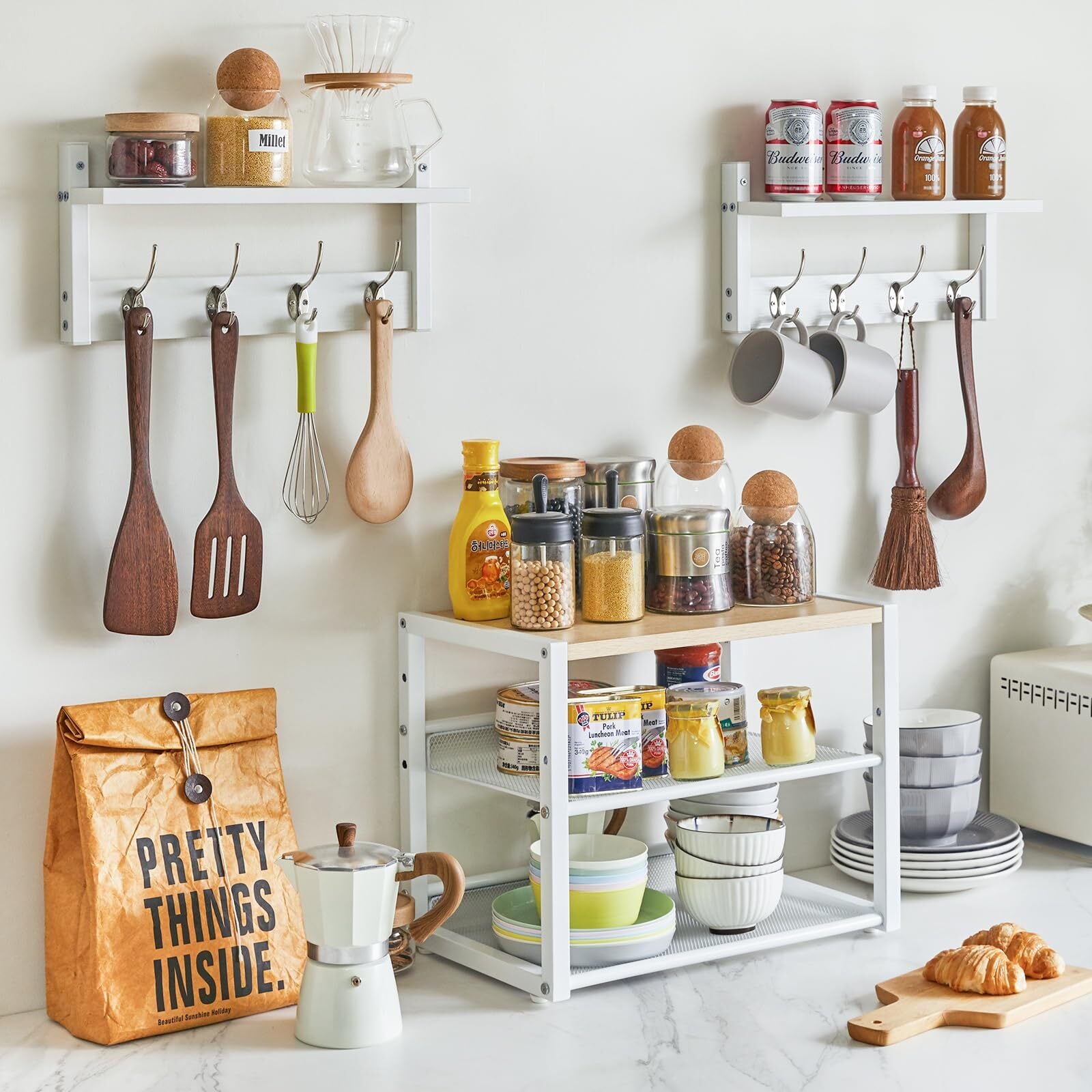 多機能デスクトップ収納:このプリンタースタンドは、家庭のオフィスだけでなく、キッチンの食器や電子レンジ、浴室の洗面用品、またはリビングでアクセサリーや植物を置くこともできます。 あなたはどんな場所にも置けます。