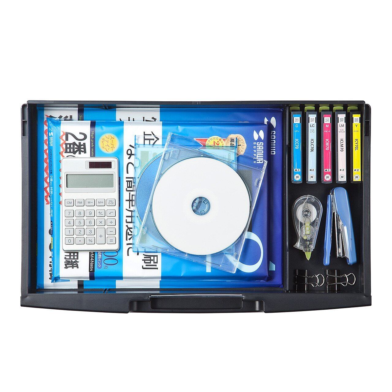 プリンタのすぐそばに収納することで、探す手間がなく、買い置きを把握でき、すぐに使うことができます。
