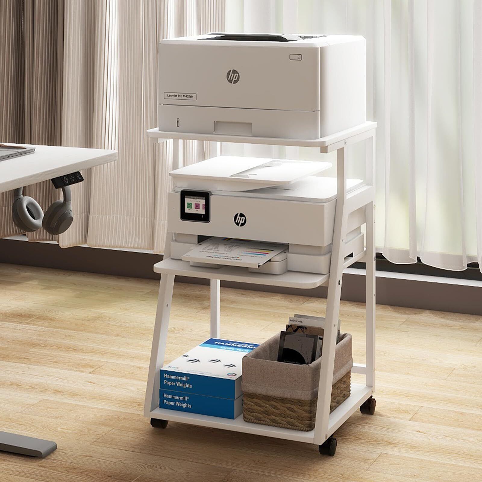 【在庫処分】PUNCIA 3段 プリンター台 幅50cm 奥行40cm 高75cm ワゴン キャスター付き プリンターラック 収納棚 大型 コピー機 置き 台 省スペース 調節可能中棚 木製ラック 取り付け簡単 120kg高耐荷重 オフィス/ホーム
