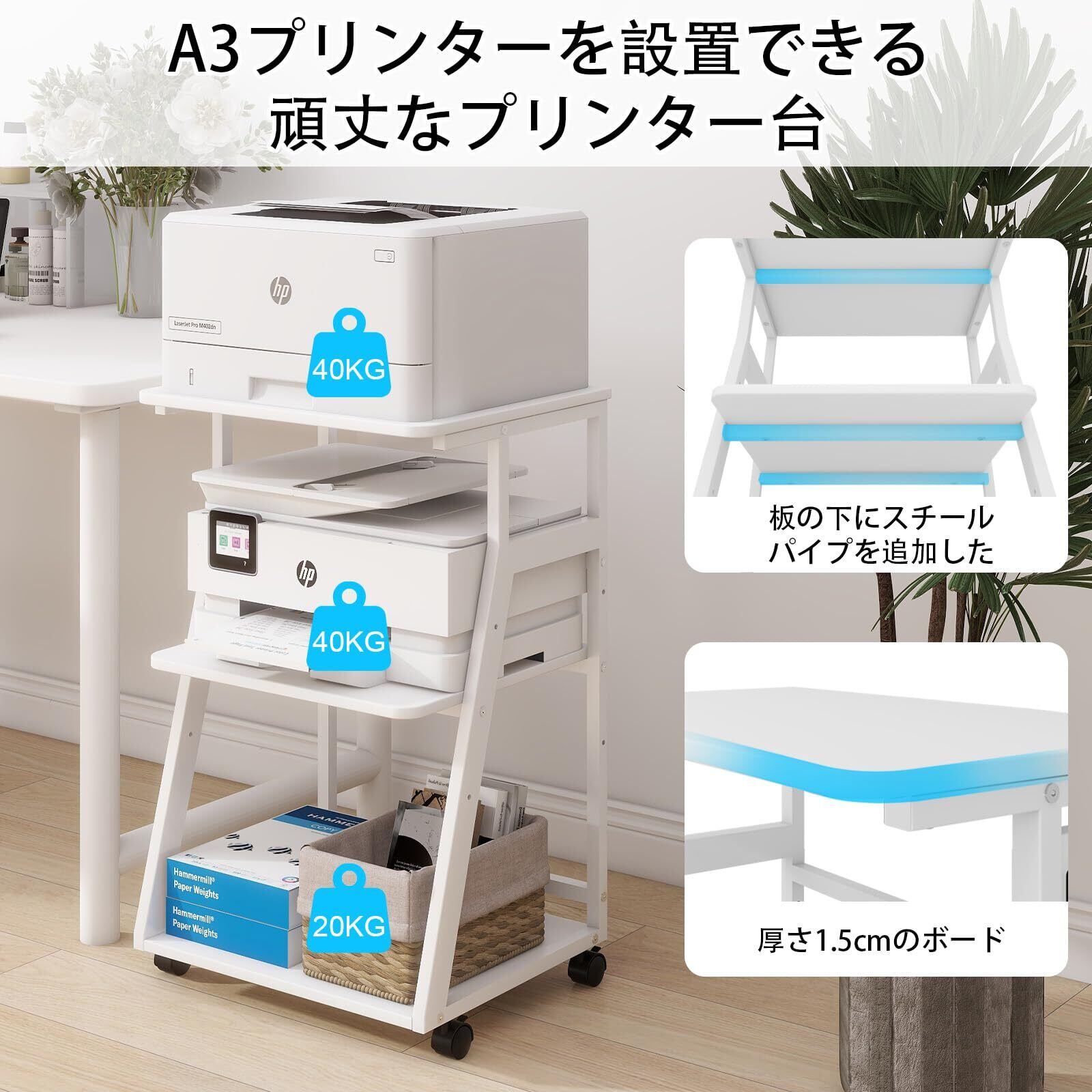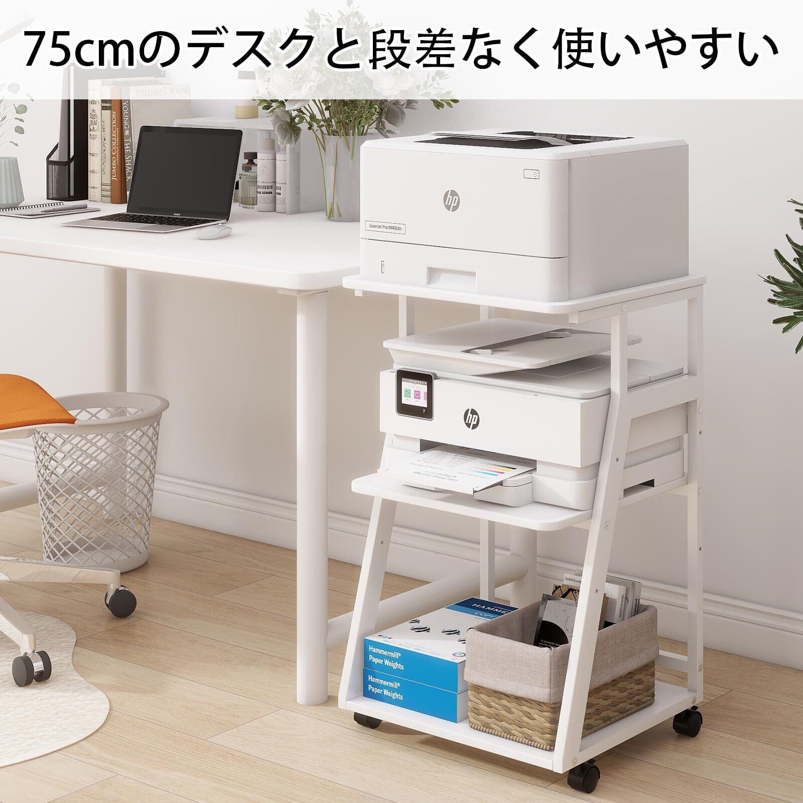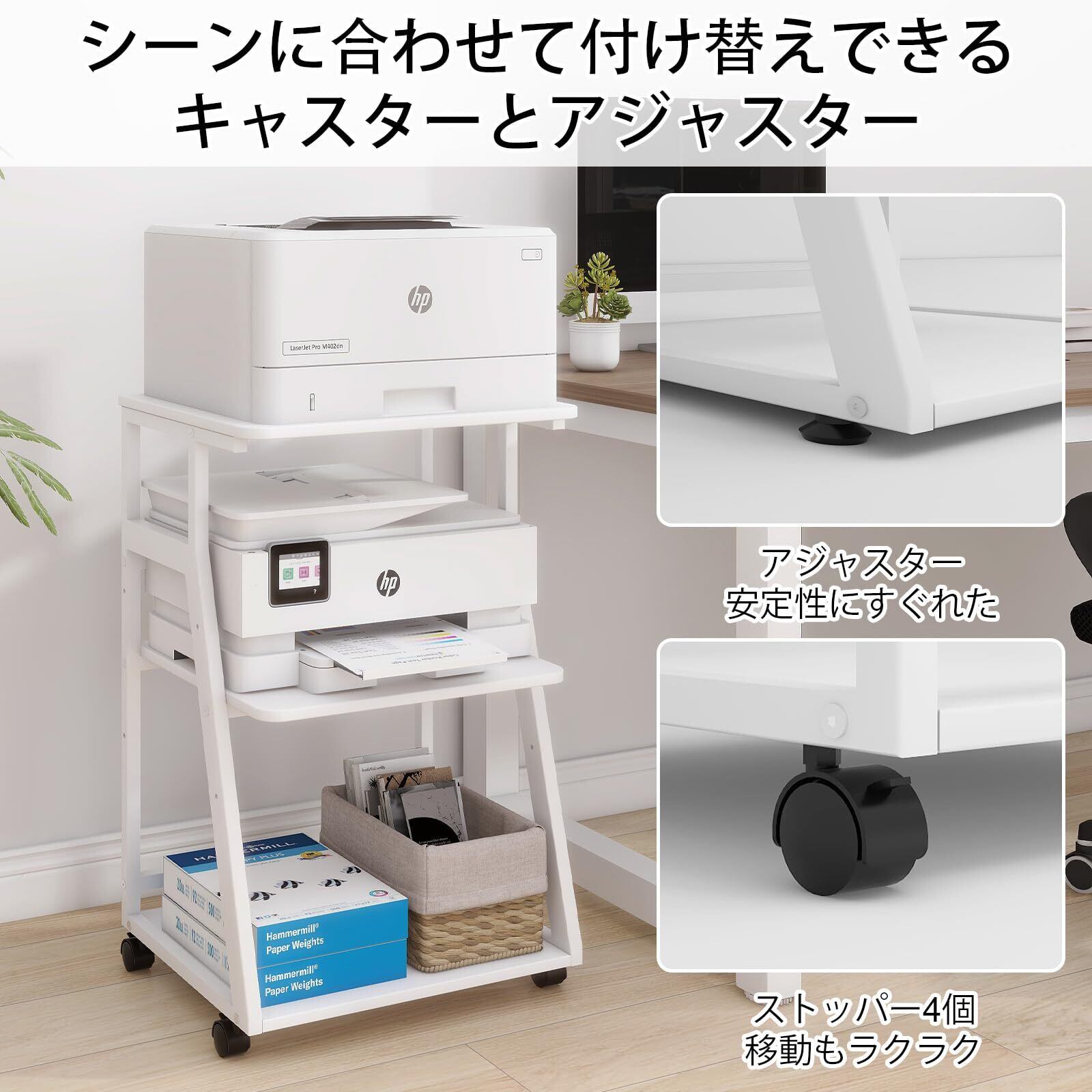 PUNCIA 3段 プリンター台 幅50cm 奥行40cm 高75cm ワゴン キャスター付き プリンターラック 収納棚 大型 コピー機 置き 台 省スペース 調節可能中棚 木製ラック 取り付け簡単 120kg高耐荷重 オフィス/ホーム
