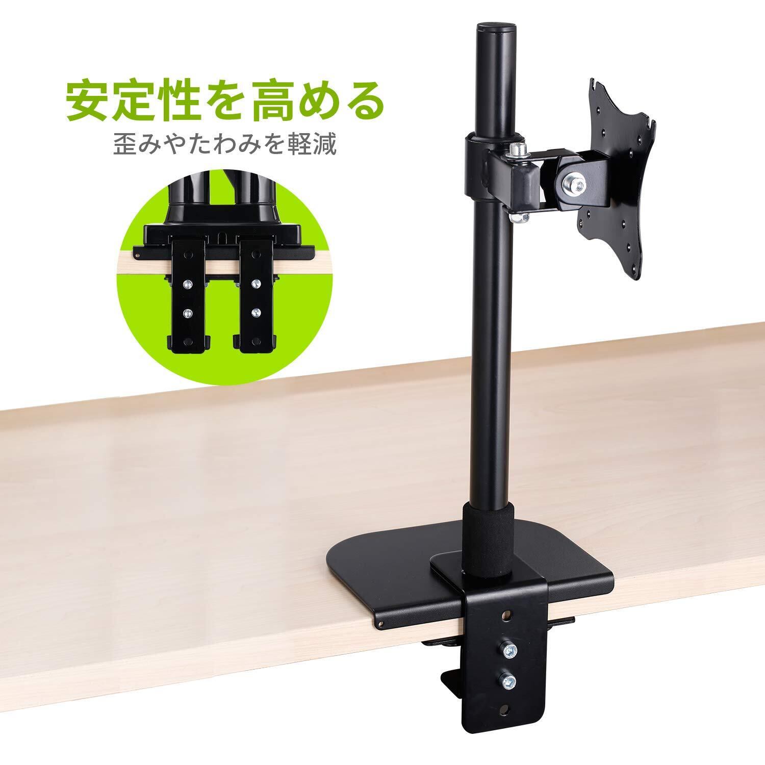 「硬さ強化」モニターアームだけ取付より、補強プレートの増設は天板保護の上、取付部の歪み、凹みやモニタアームが前へそり、左右へ傾きも軽減できます。