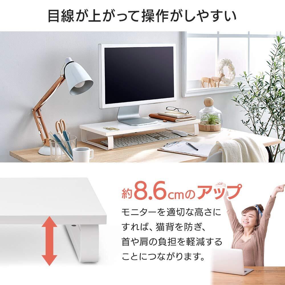 約8.6cmアップ。モニターを適切な高さにすれば、猫背を防ぎ、首や肩の負担を軽減することにつながります。