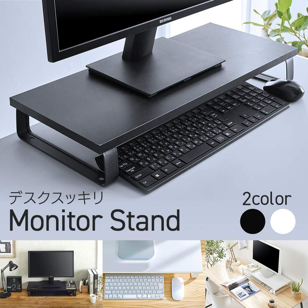 アイリスオーヤマ デスクがスッキリするモニター台 幅59cm ホワイト 収納領域の大きなワイド設計 目線が上がるので首肩の負担が軽減 インテリアになじむシンプルデザイン ほこりが溜まりにくいフラット設計 パソコン台 ディスプレイ台 机上台 PC台 プリンタ台 キーボード マウス収納 幅約59×奥行約25×高さ約8.6㎝ MNS-590