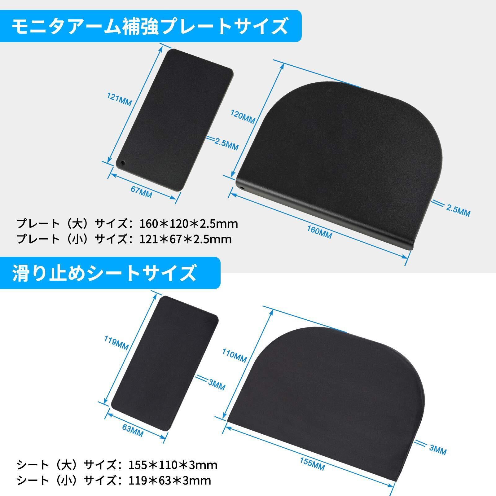 モニターアーム補強プレート 取付部硬さ強化対策 傷防止 デスク保護 滑り止めシート付き 黒