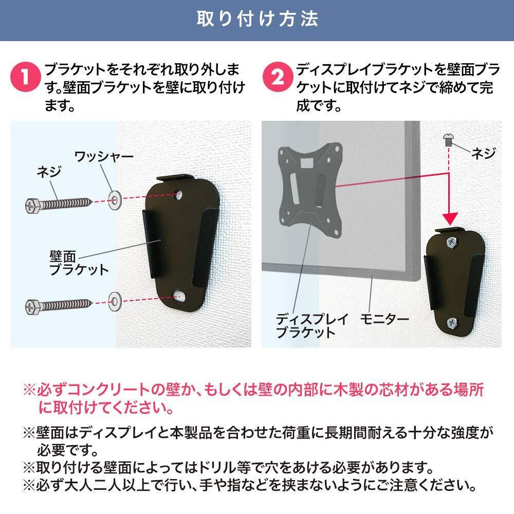【ご注意】※必ずコンクリートの壁か、もしくは壁の内部に木製の芯材がある場所に取付けてください。壁面はディスプレイと本製品を合わせた荷重に長期間耐える十分な強度が必要です。※20kgを超える機器は取付けないでください。※用途以外で使用しないでください。