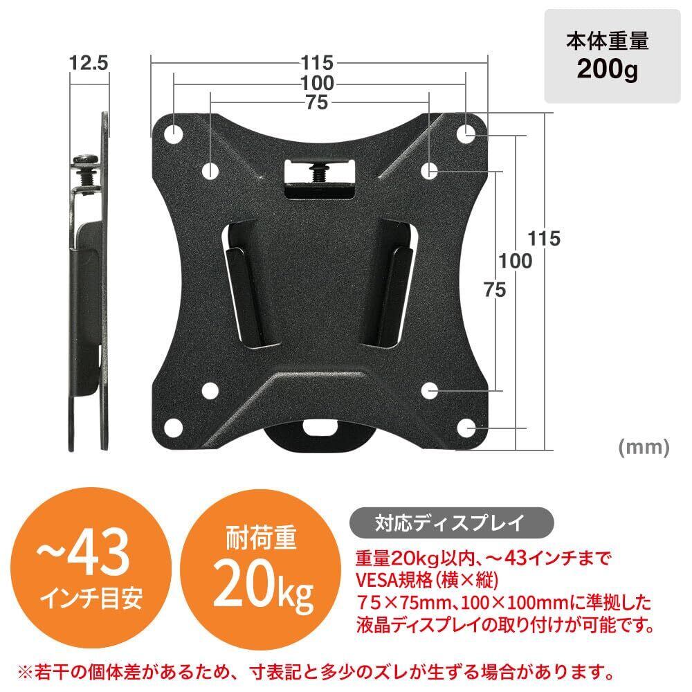 【人気商品】イーサプライ 壁掛け金具 テレビ モニター ディスプレイ 13~43インチ目安 耐荷重20kgまで 薄型 固定 VESA規格 汎用 EEX-LA021