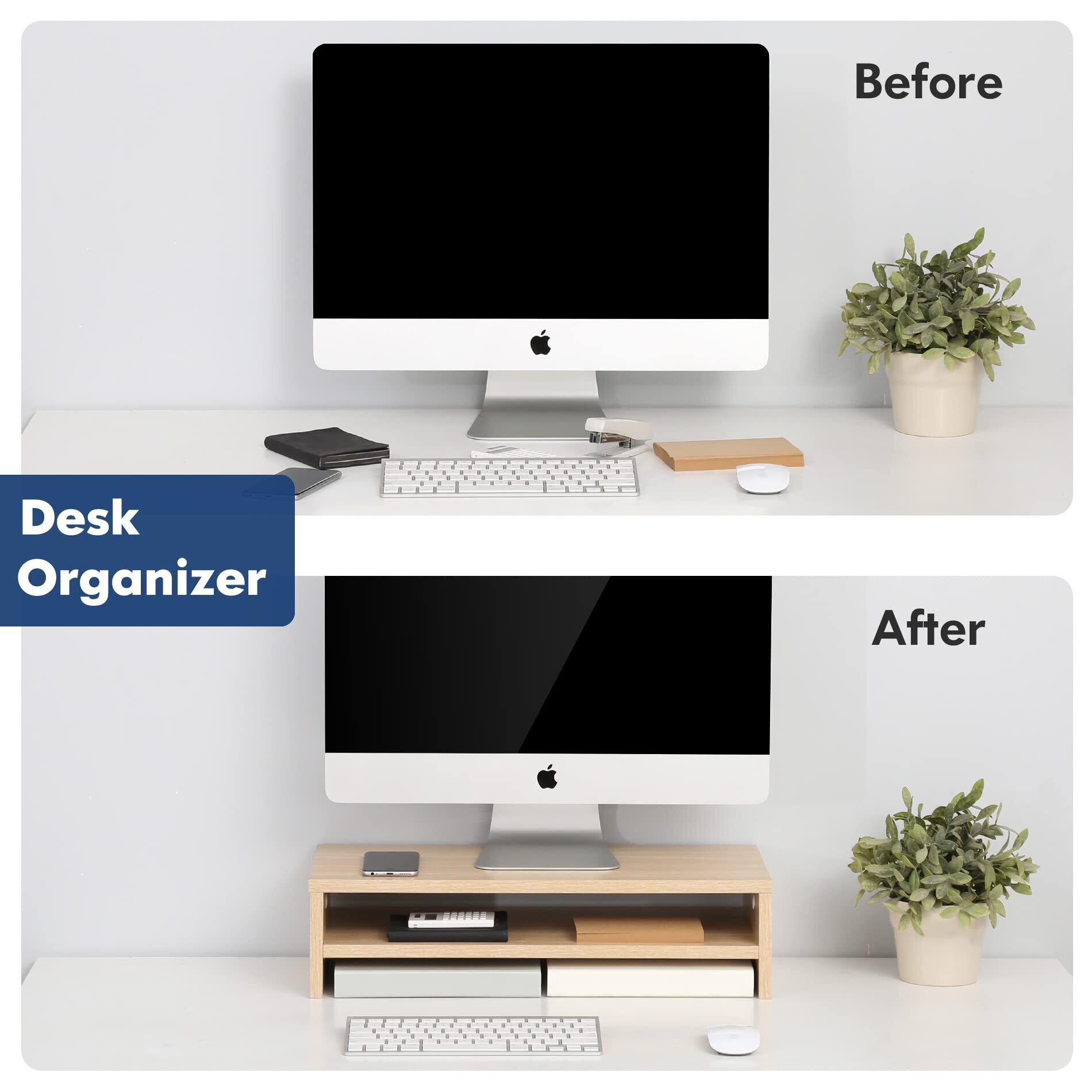 Fitueyes モニター台 スタンド 机上台 54cm横幅 木製天板 二段式 PC台卓上 用 机上ラック 卓上 収納 整理整頓オークDT205401WO