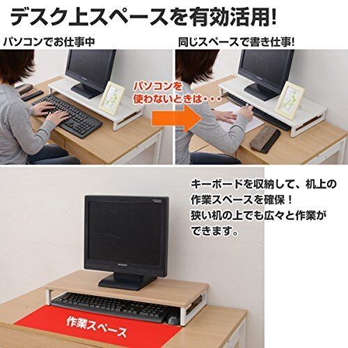 ●キーボードやマウスを収納してデスク上を有効活用できるモニタースタンド●FAXやプリンター台としても便利●背面に板などの障害が無いのでケーブル類の配線がスッキリ●組立品(組立時間:約10-20分)