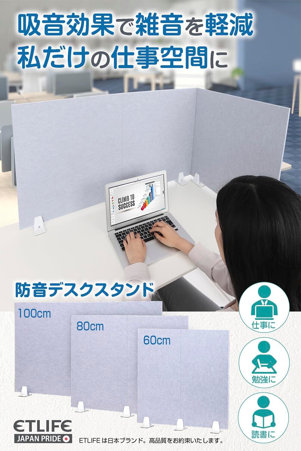 私だけの仕事空間 : 吸音 × 防音 効果でノイズを軽減。デスクにパーテーションを置くだけで電話もクリアに快適に。