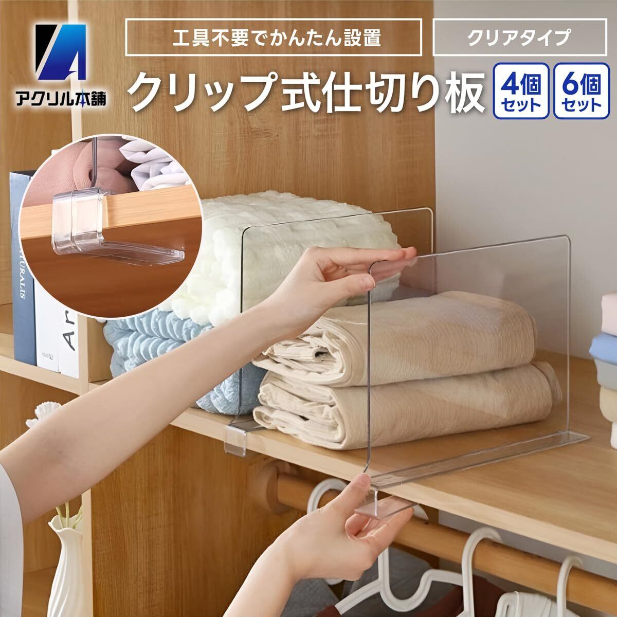 【仕切りで空間を賢く整理】クローゼットや棚の中がすっきりと片付き、探し物のストレスもゼロへ。透明で目立たないアクリル仕切り板を差し込むだけで、衣類・書類・バッグ・寝具などをきれいに整頓。毎朝のコーディネートが楽になる、使うたびに気分が上がる収納オーガナイザーです。