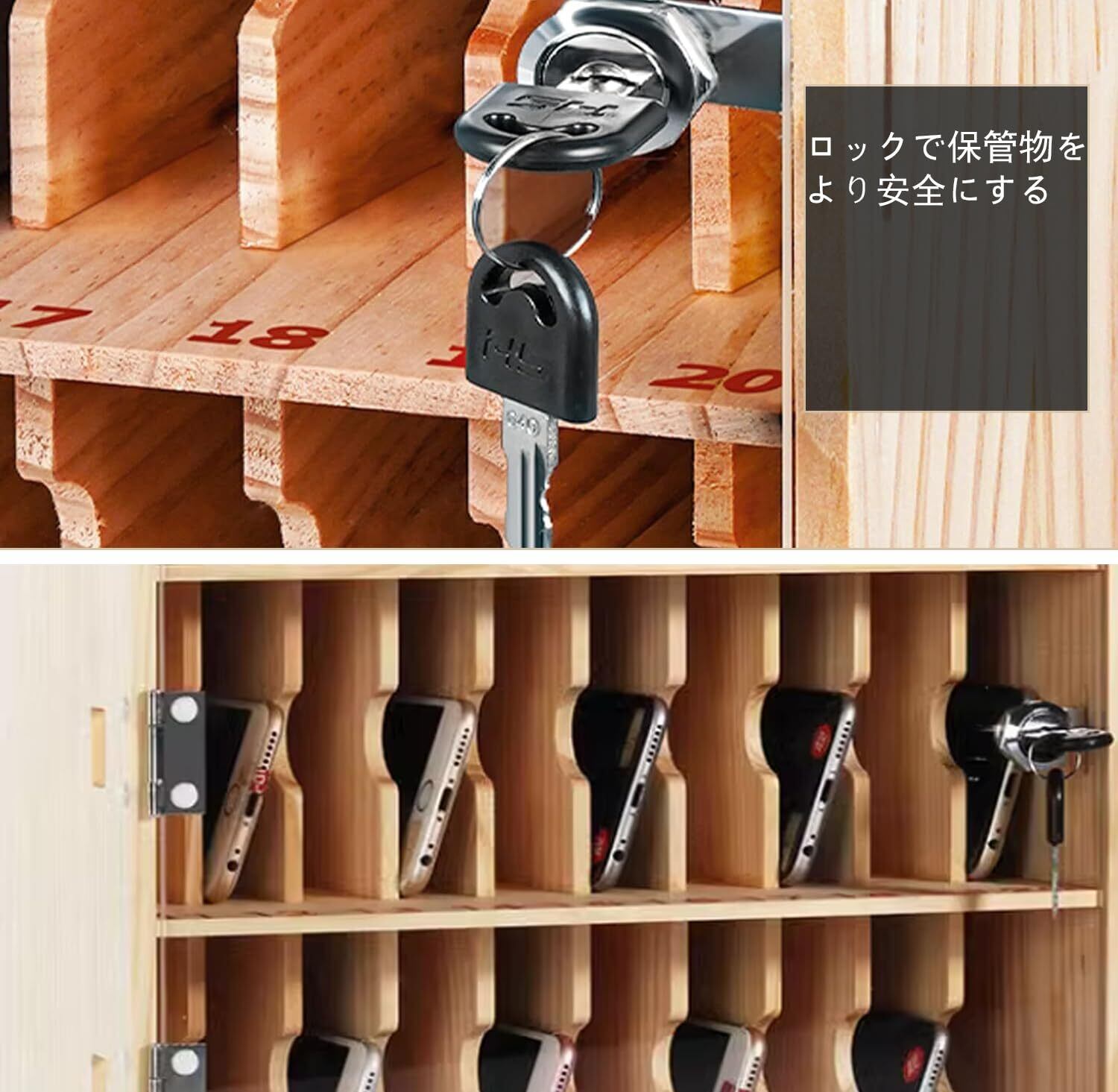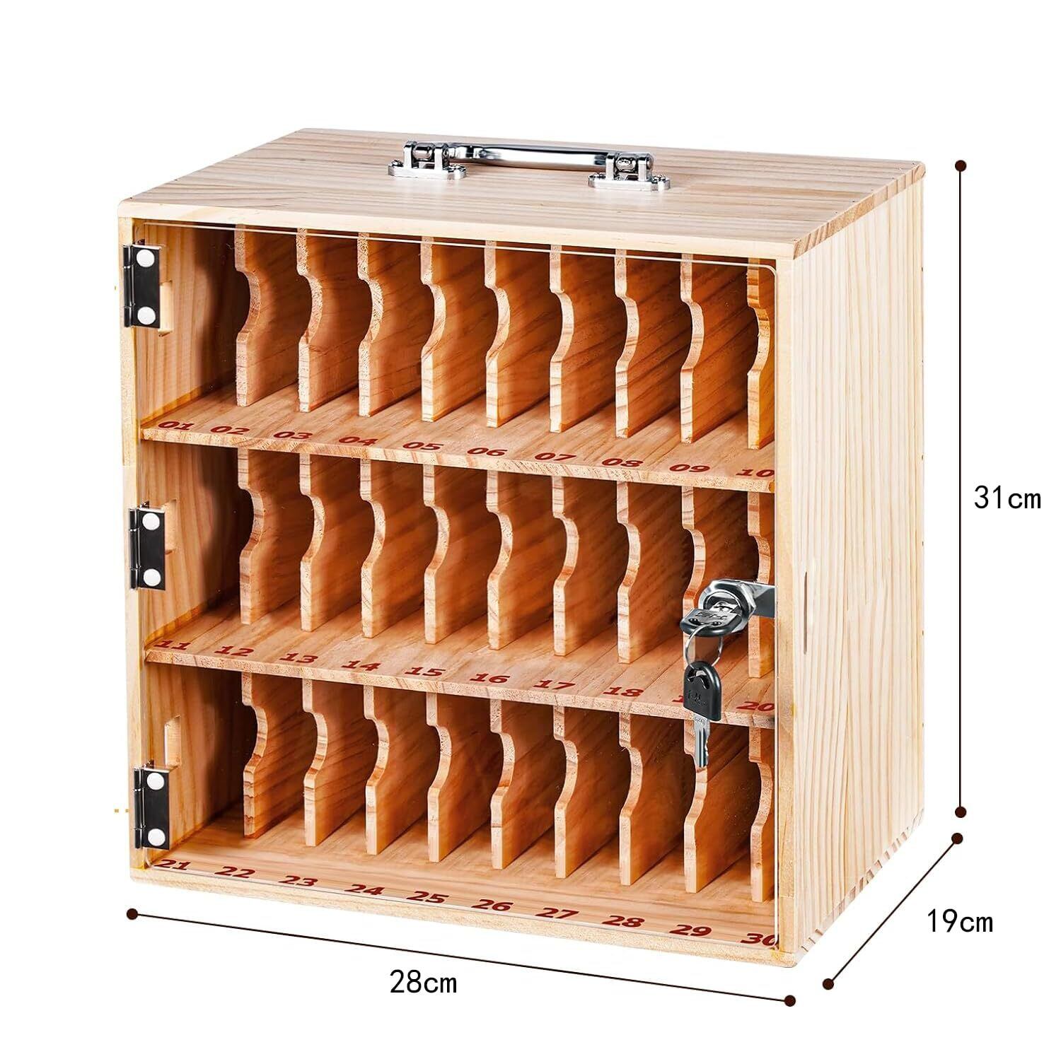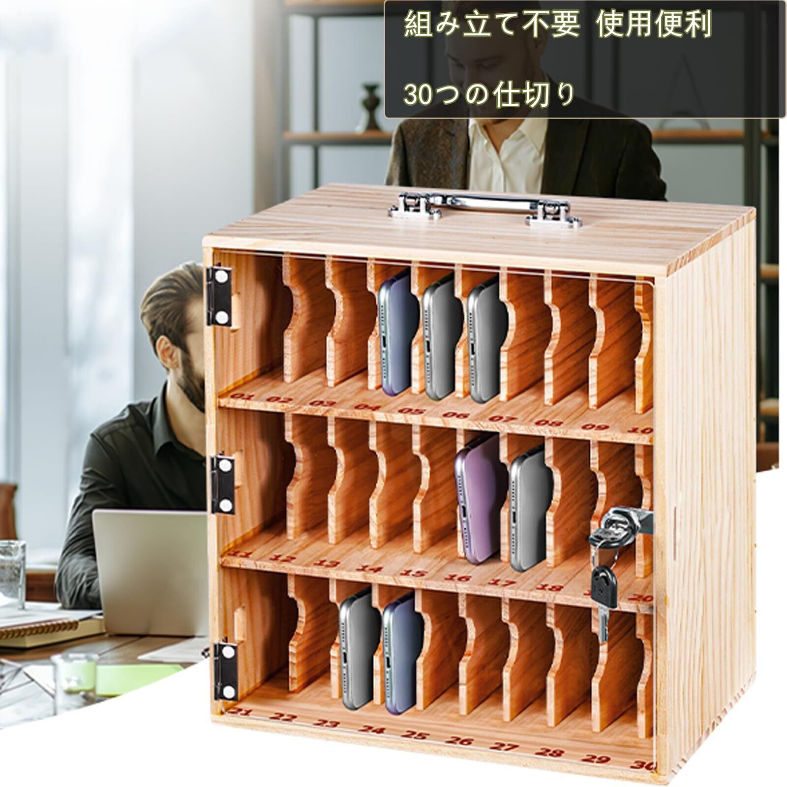 MXBAOHENG 木製スマホ収納ボックス 組み立て不要 30仕切り 鍵付き保管ボックス 試験場/教室/会社/塾など対応 管理ボックス 充電穴ある 紛失防止 携帯電話ロッカー