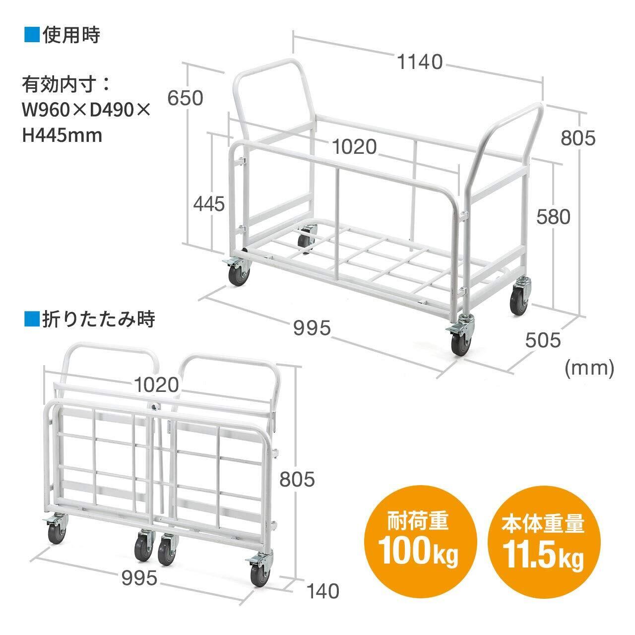 サンワダイレクト 折りたたみ椅子用台車 キャスター付き 100-SNC037CART