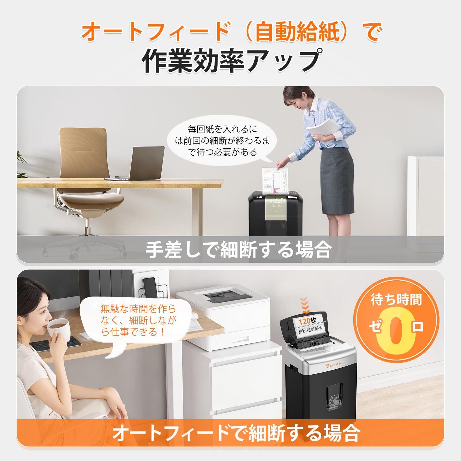 bonsaii オートフィード シュレッダー 自動細断120枚 60分連続使用 マイクロカット 手差しも対応 業務用 23L大容量 カード対応 自動送り機能 静音 電動 シルバーxブラック C233-B