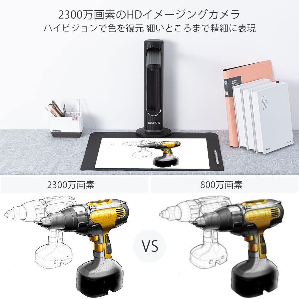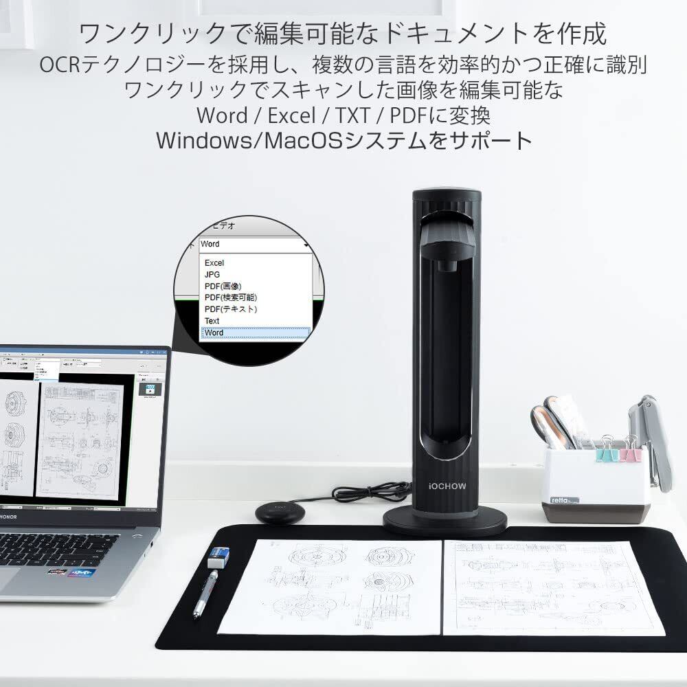iOCHOW ブックスキャナー ドキュメントスキャナー スキャナー 書画カメラ:最大A3サイズ対応 2300万画素 多言語OCR機能 日本語文章識別 非破壊 自動平坦化 LEDライト付き 教室 オフィス Windows/MacOSシステム対応 K2-New