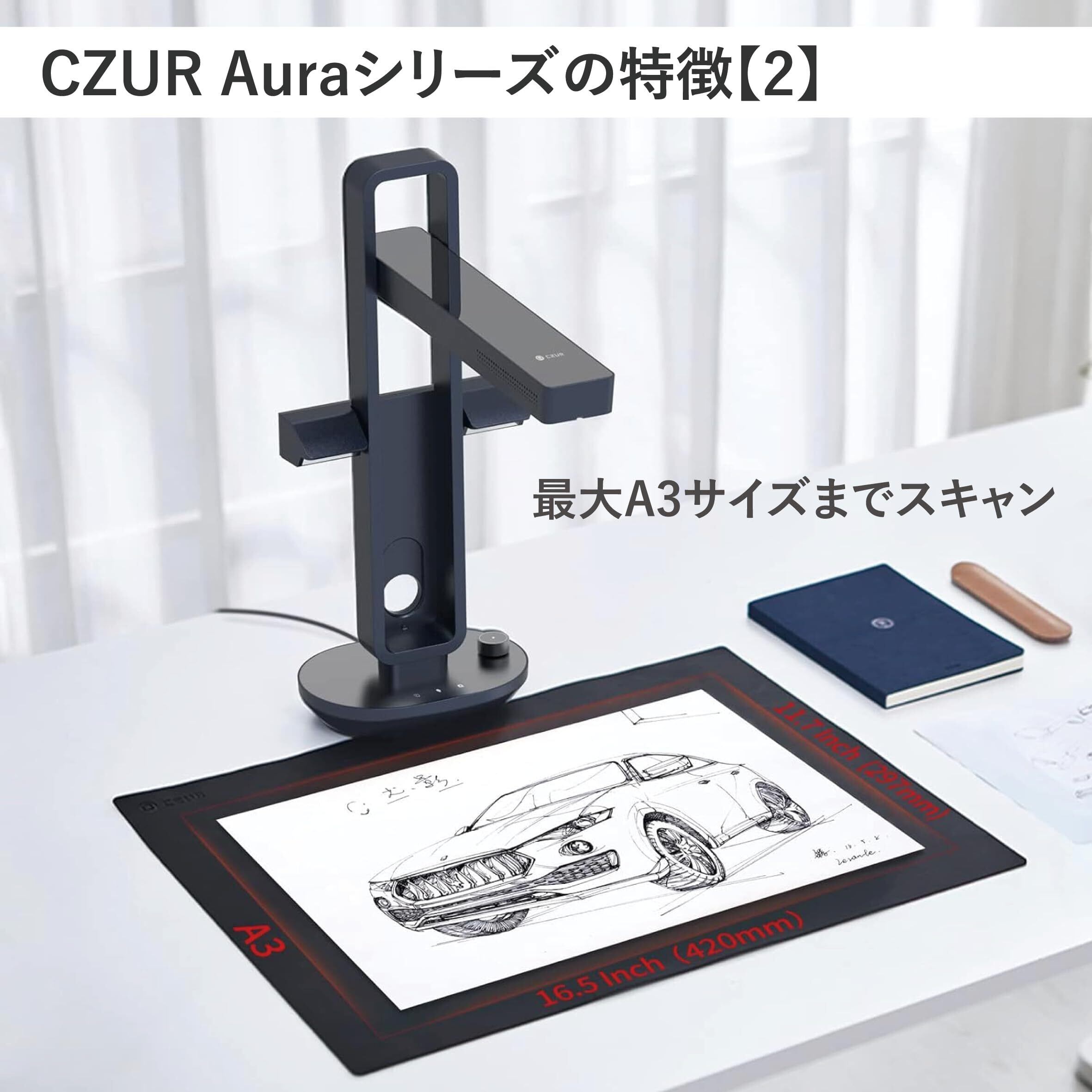 CZUR Aura S Pro ブックスキャナー A3対応 2000万画素 非裁断/非破壊スキャン 3本レーザー補正搭載 Windows/Mac両対応 ドキュメントスキャナー 電子帳簿保存法対応 OCR搭載 PSE認証済 日本国内専用 光学ドライブ不要