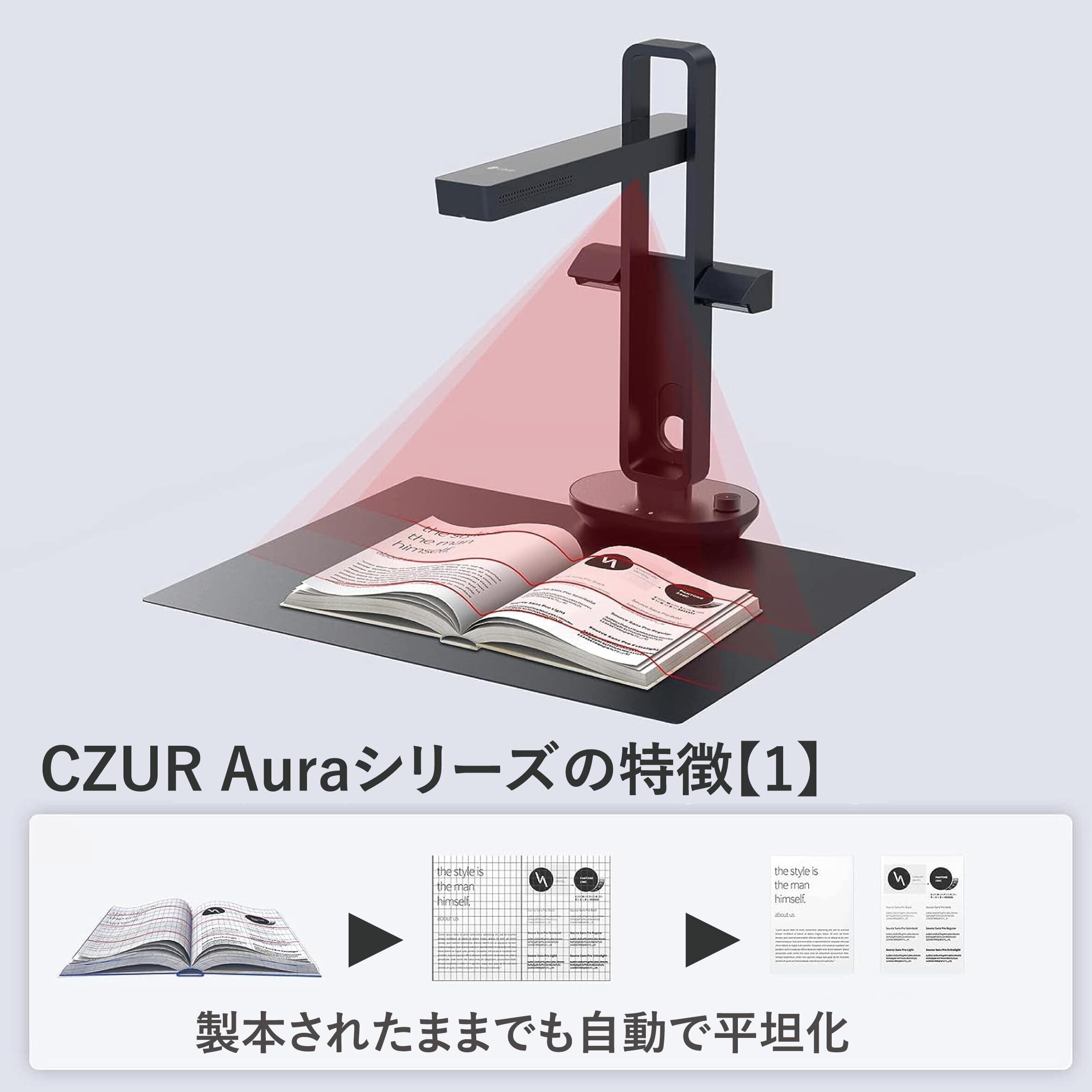 【数量限定】CZUR Aura S Pro ブックスキャナー A3対応 2000万画素 非裁断/非破壊スキャン 3本レーザー補正搭載 Windows/Mac両対応 ドキュメントスキャナー 電子帳簿保存法対応 OCR搭載 PSE認証済 日本国内専用 光学ドライブ不要
