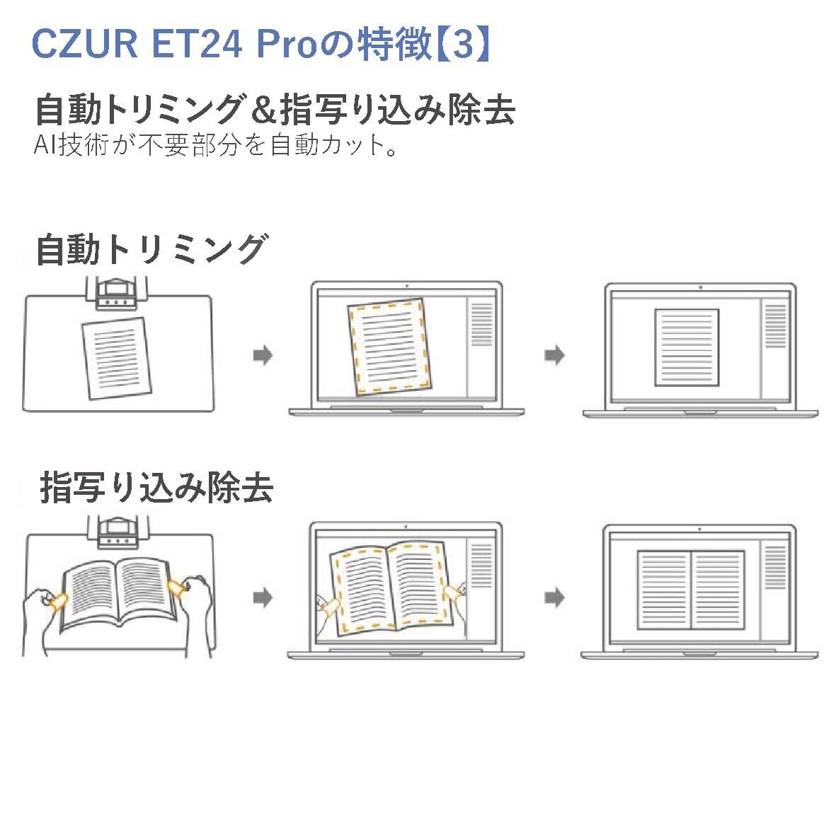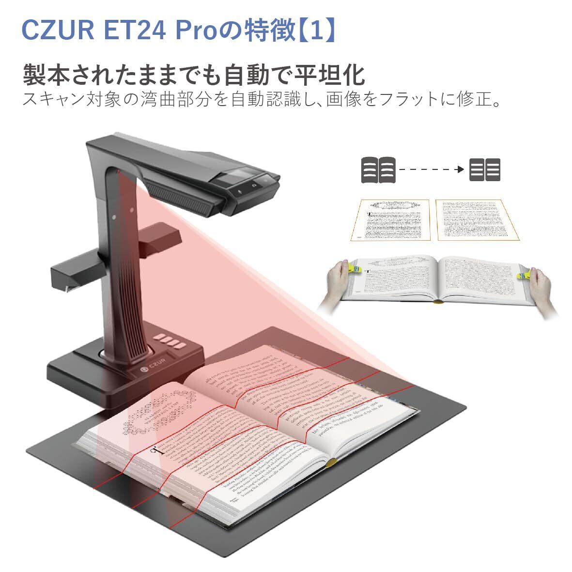 CZUR ET24 Pro ブックスキャナー A3対応 2400万画素 非破壊 高速スキャン 3本レーザー補正搭載 Windows/Mac対応 電子帳簿保存法対応 OCR機能 自動平坦化 歪み補正 HDMI出力 日本国内専用 光学ドライブ不要