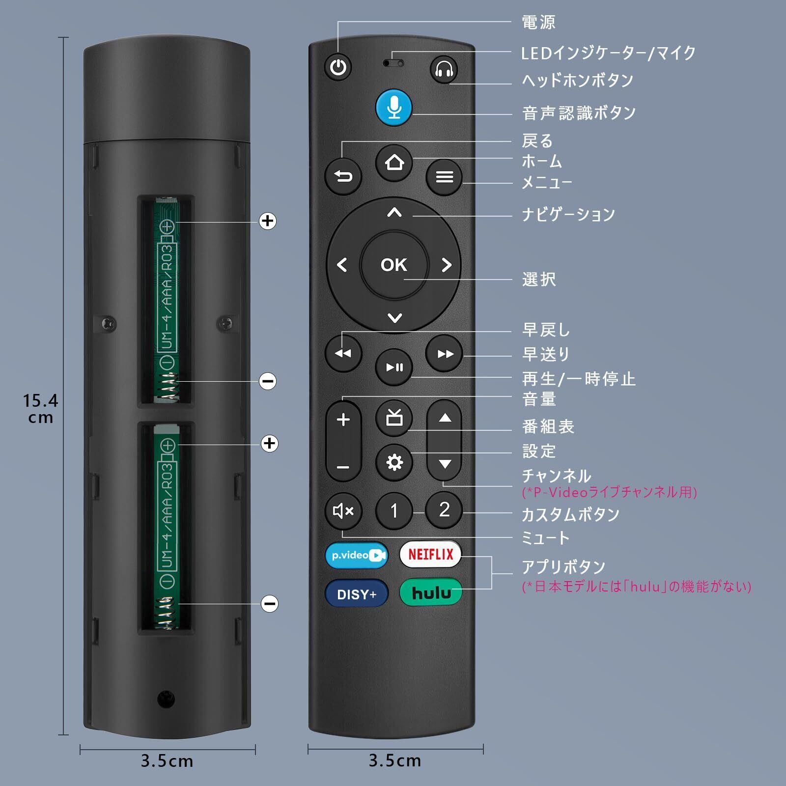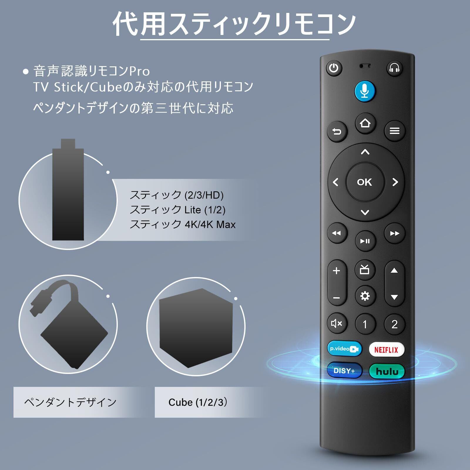 【ファイヤースティックリモコン】 音声リモコンPro (2022)、スティック第2/3世代、スティック HD、スティック Lite 1/2、スティック 4K、スティック 4K Max、スティックCube第1/2/3世代、第3世代のペンダントデザインTV。*テレビに対応しません