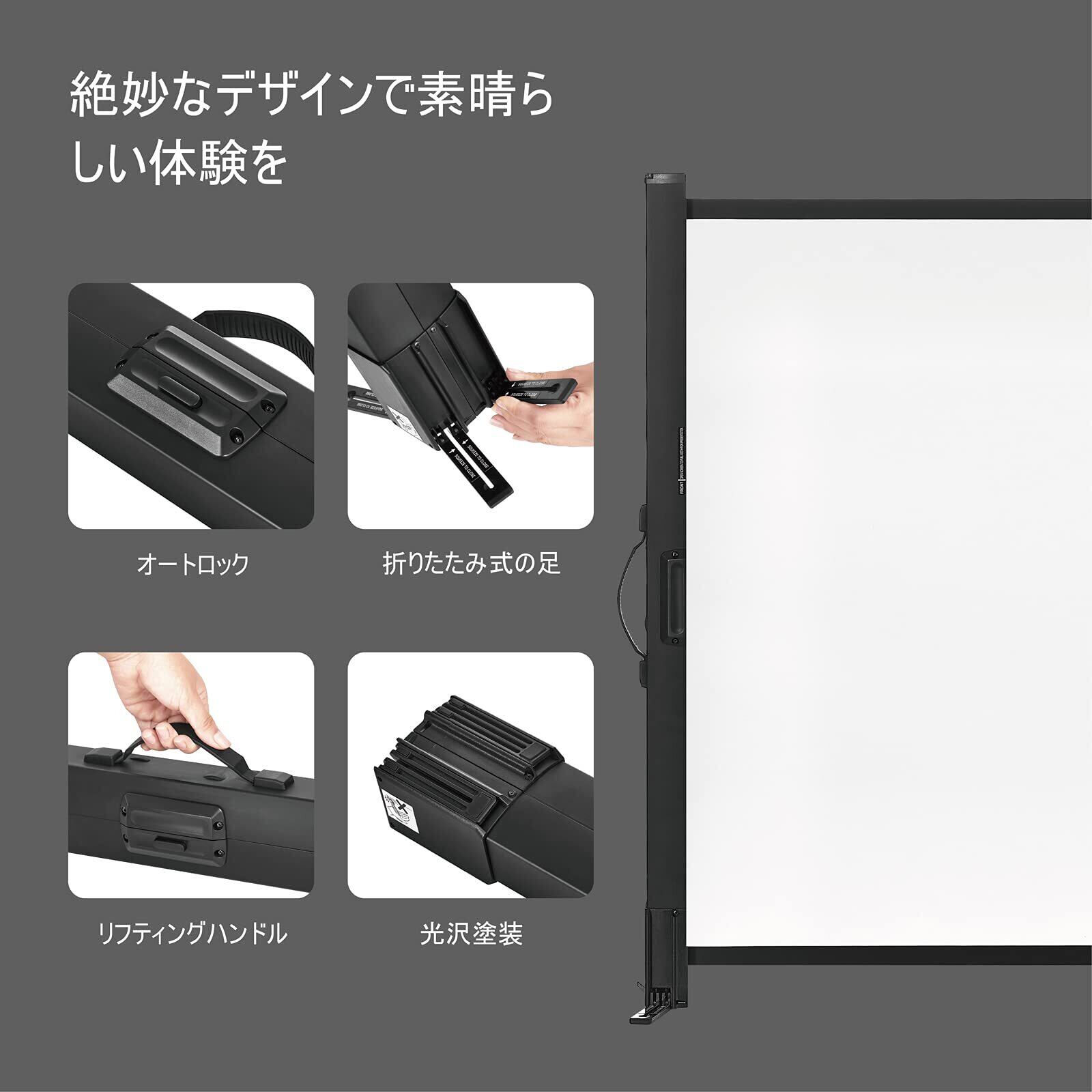 絶妙なデザインのスクリーン。絶妙なデザインのポータブルプロジェクタースクリーンが手に入ります。オートロックにより、スクリーンの開閉が簡単にできます。スタンドは折りたたむことができるので、スクリーン全体をコンパクトにすることができ、ハンドルを持ち上げることで、どこにでも持ち運ぶことができます。