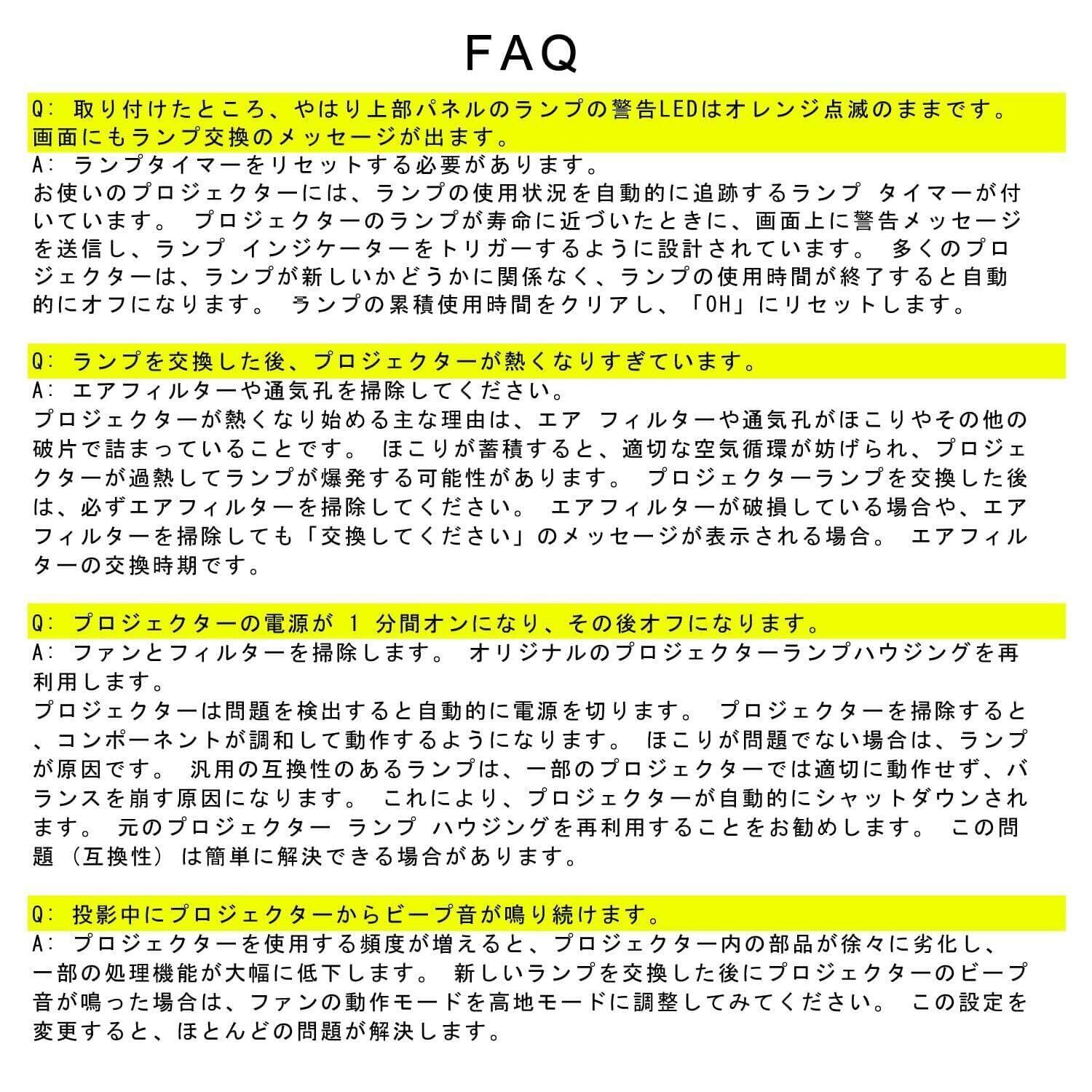 重要: ランプを交換した後は、必ずランプ タイマーをリセットし、プロジェクターの通気孔を掃除し、必要に応じてエア フィルターを掃除/交換してください。