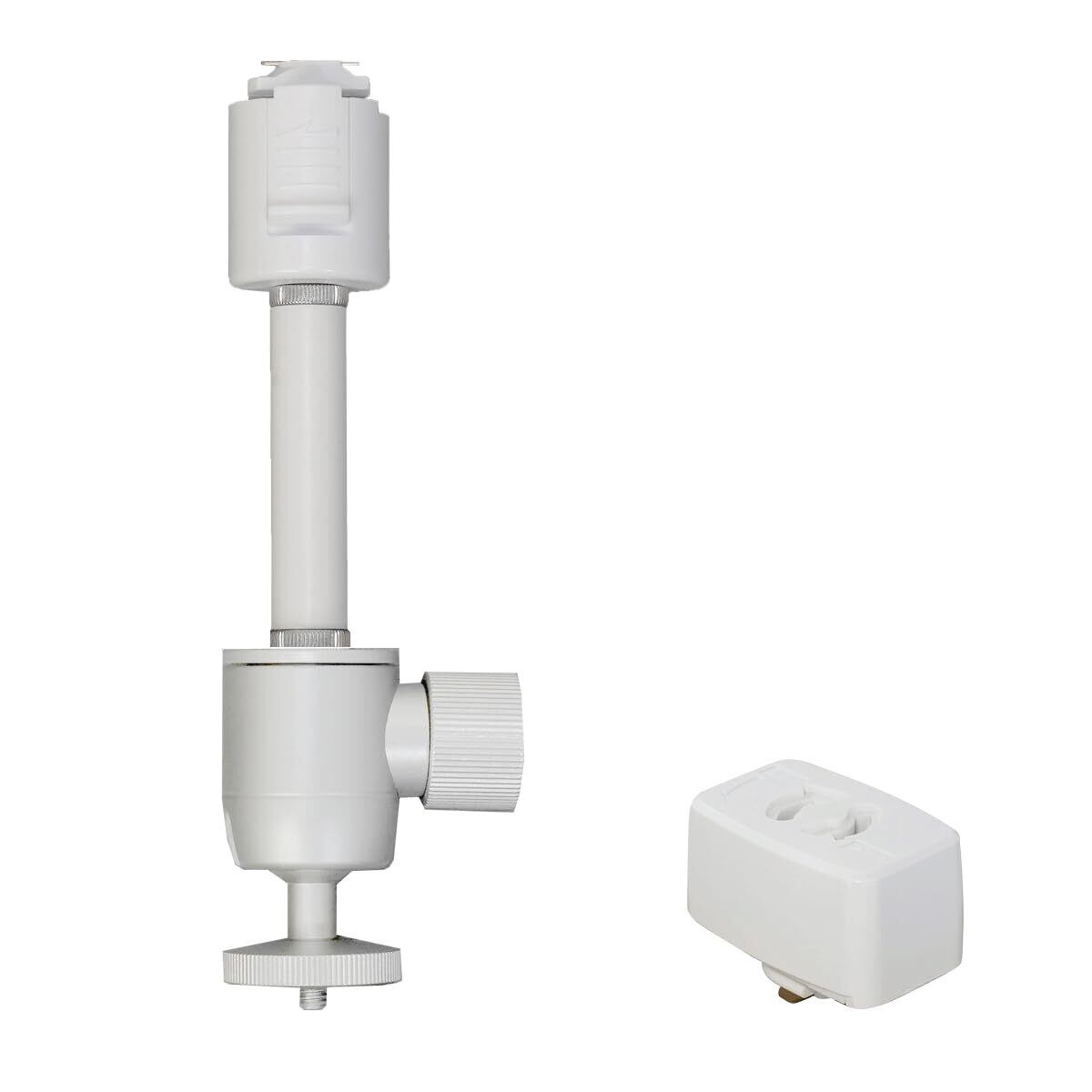 ダクトレール ライティングレール用プロジェクター天吊金具 シングルロック 1/4インチネジ用 自宅/オフィス/店舗 角度調節360° (ホワイト耐荷重3Kg プラグ付き)
