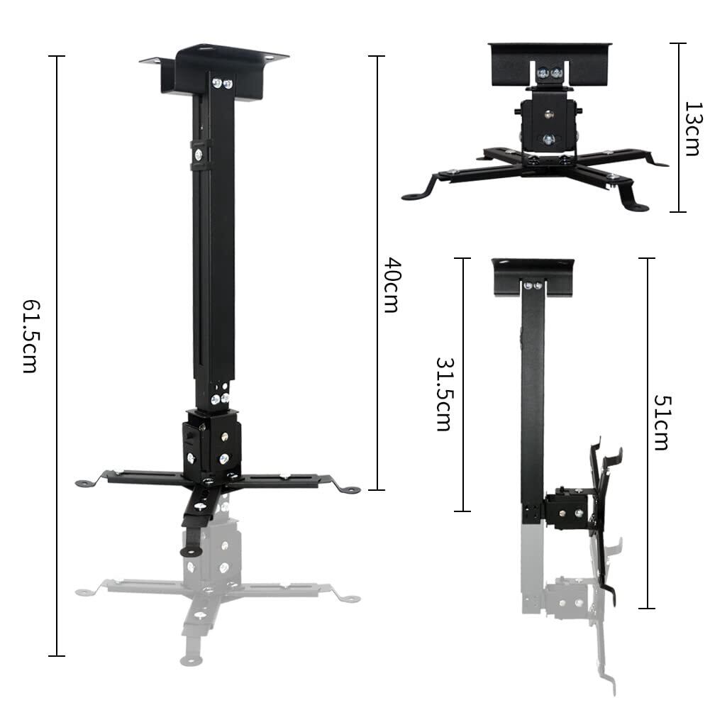 VARMHUS 天吊り金具 プロジェクター プロジェクターマウント 取り外し可能で格納式 天吊りブラケット 耐荷重15KG ±15°角度調整 壁掛け 天井 伸縮 13~61cm高さ調整可能(黒い)