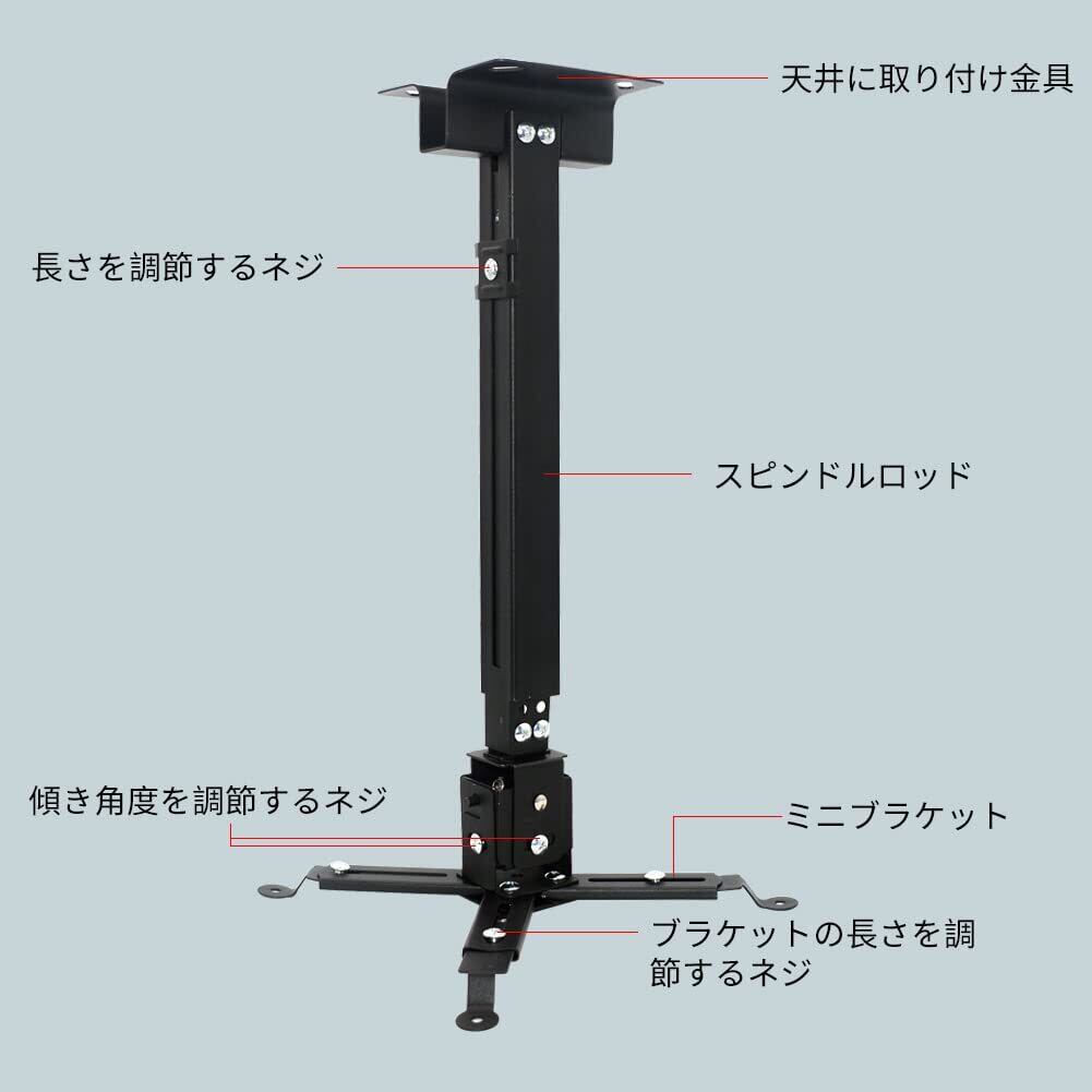 【高品質で丈夫な天吊り金具】 高品質のアルミニウム、鋼、アルミニウム合金素材で作られます。耐久性があり、錆を防ぐことに立派な効果があります。最大耐荷重は天吊りで約15kgで、壁掛けで約10kgです。4本のアンカーボルトで壁にしっかりと取り付けられ、三脚よりも安定しています。