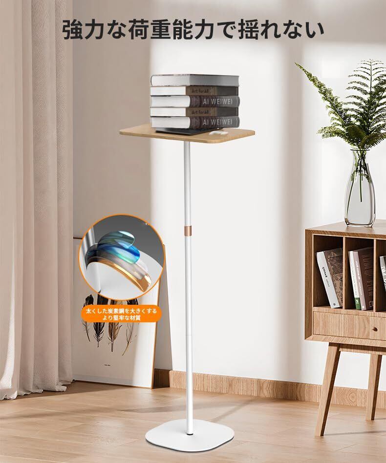 【強い耐久性と安心な積載】スタンディングデスクは金属炭素鋼ポールとベースを採用しており、防錆処理が施されており、このラップトップスタンディングデスクは耐久性があり、高荷重に耐えることができます。物をたくさん置いても安定するので、より安心してお使いいただけます。