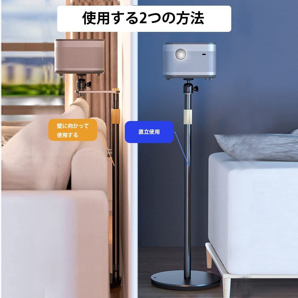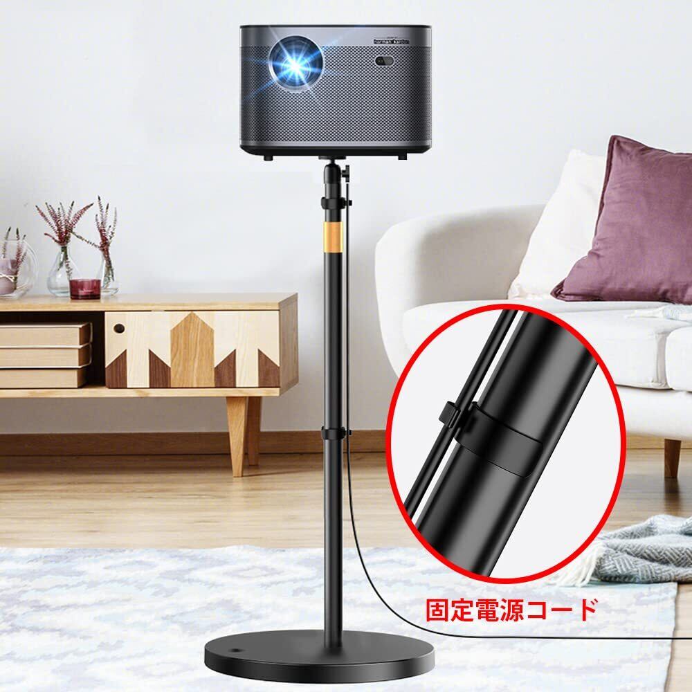 【新春セール】プロジェクタースタンド、角度調整、360°回転、85-123cmの高さ調整可能、金属構造、二重穴ベースデザイン、安定、壁に隠れ、ワイヤーを整理するスペースを節約、約5kg、黒
