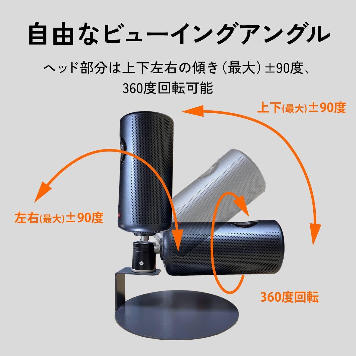 【特徴】ネジ穴1つで簡単に天井投影!天井・壁面の両方に対応。1/4インチネジがあるプロジェクターなら、メーカー問わず即取り付けできるプロジェクタースタンド。コンパクトながらしっかりとした安定感。上下左右、自由なビューイングアングルに角度調整できます。テレワークやWEB会議など省スペースで利用できます。