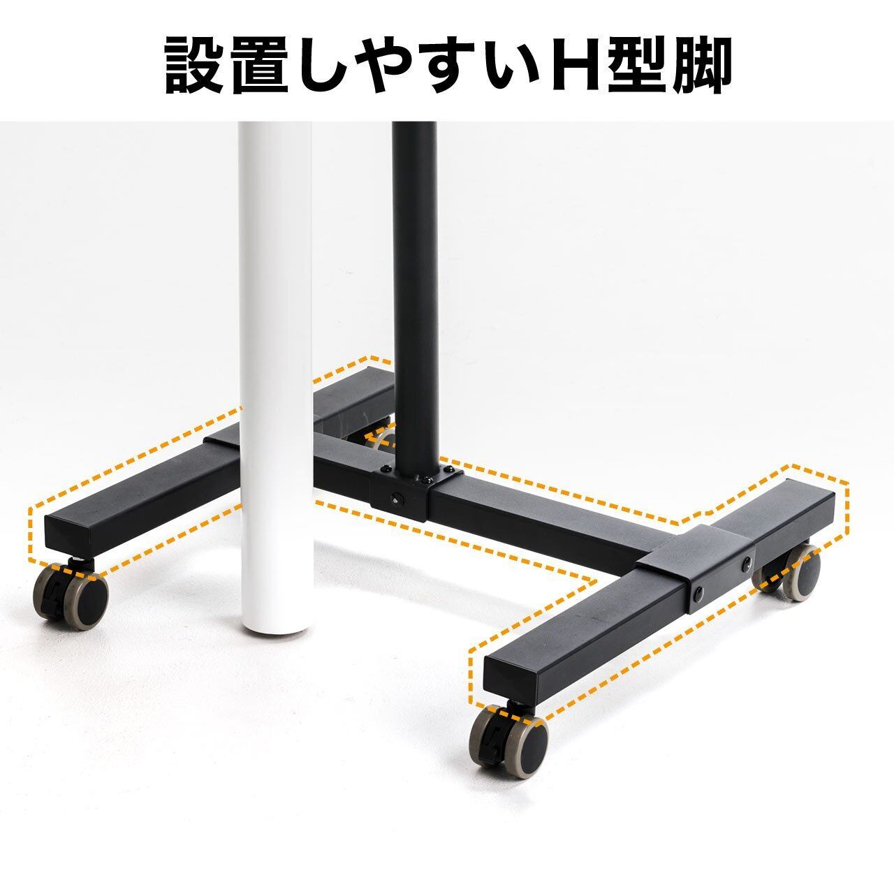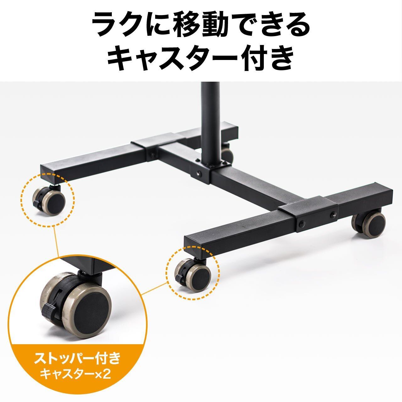 天板部の高さは95~145cmまでの25cmごとの11段階の調整が可能です。ストッパー付きキャスター搭載で、簡単に移動ができます。