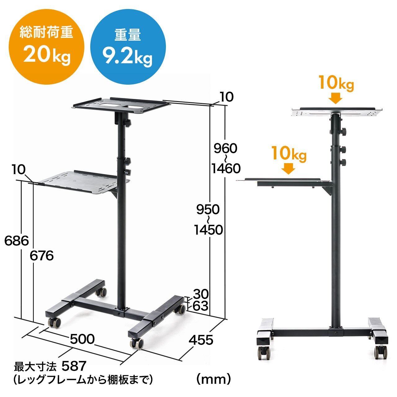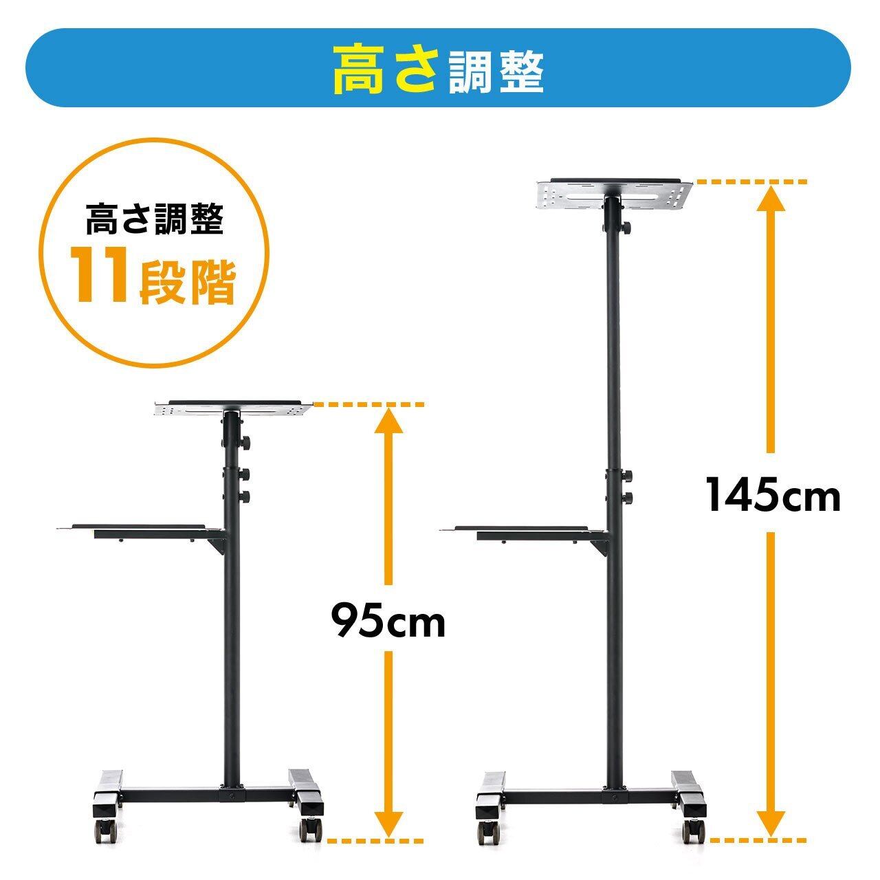 サンワダイレクト プロジェクター台 棚板付 キャスター付 高さ調整11段階 100-PRST002