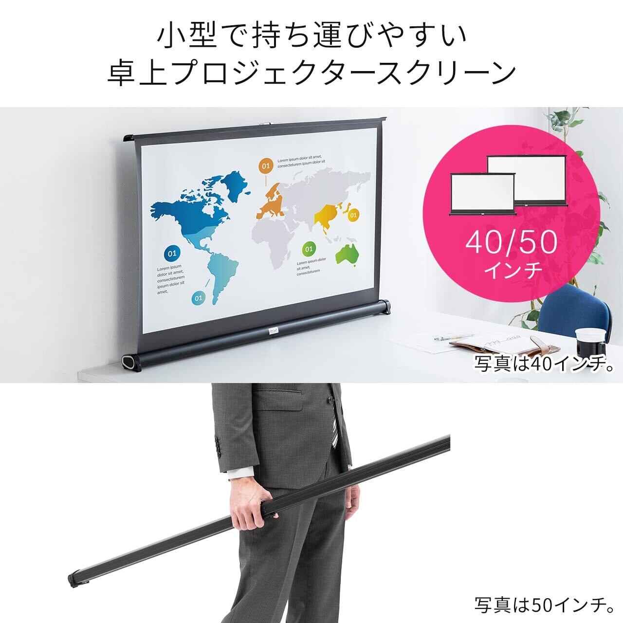 サンワダイレクト プロジェクター スクリーン モバイルスクリーン 40インチ 自立式 16:9 卓上 100-PRS020