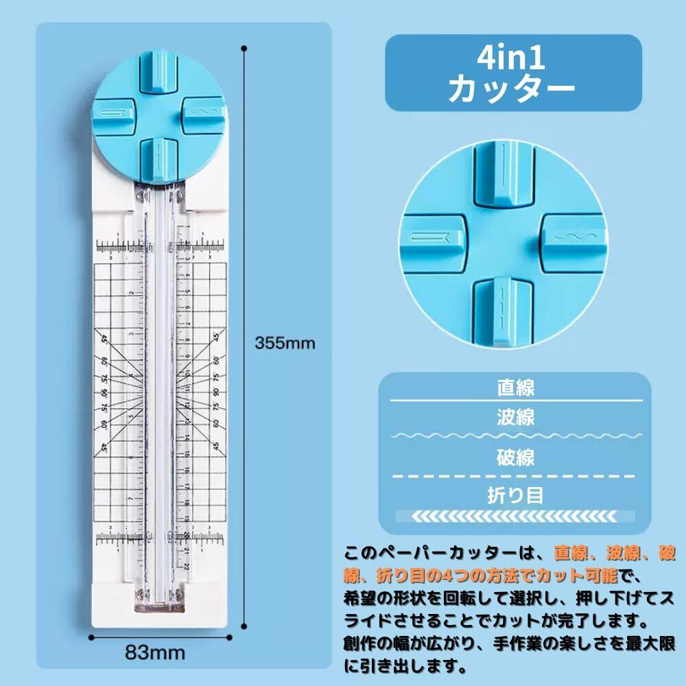 【多彩なカットスタイルで手作業を楽しむペーパーカッター】このペーパーカッターは、直線、波線、破線、折り目の4つのスタイルでカット可能で、希望の形状を回転して選択し、押し下げてスライドさせることでカットが完了します。創作の幅が広がり、手作業の楽しさを最大限に引き出します。
