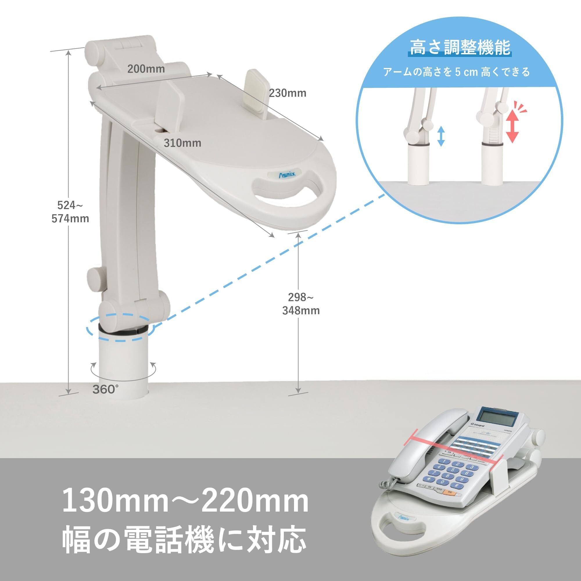 適応電話機:幅130~220mmまで、質量1kgまで