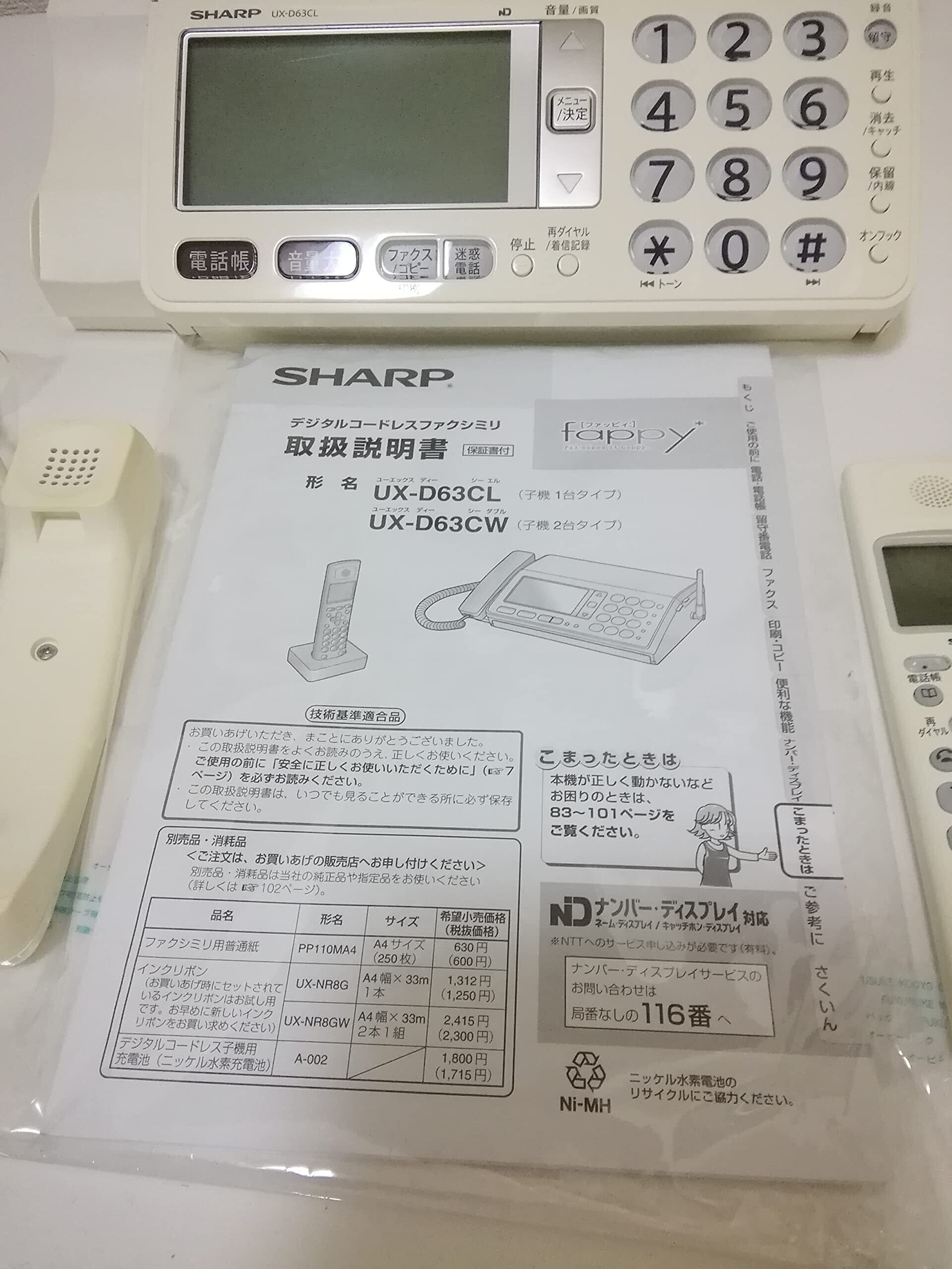 【2022最新】シャープ デジタルコードレスFAX 子機1台付き UX-D63CL
